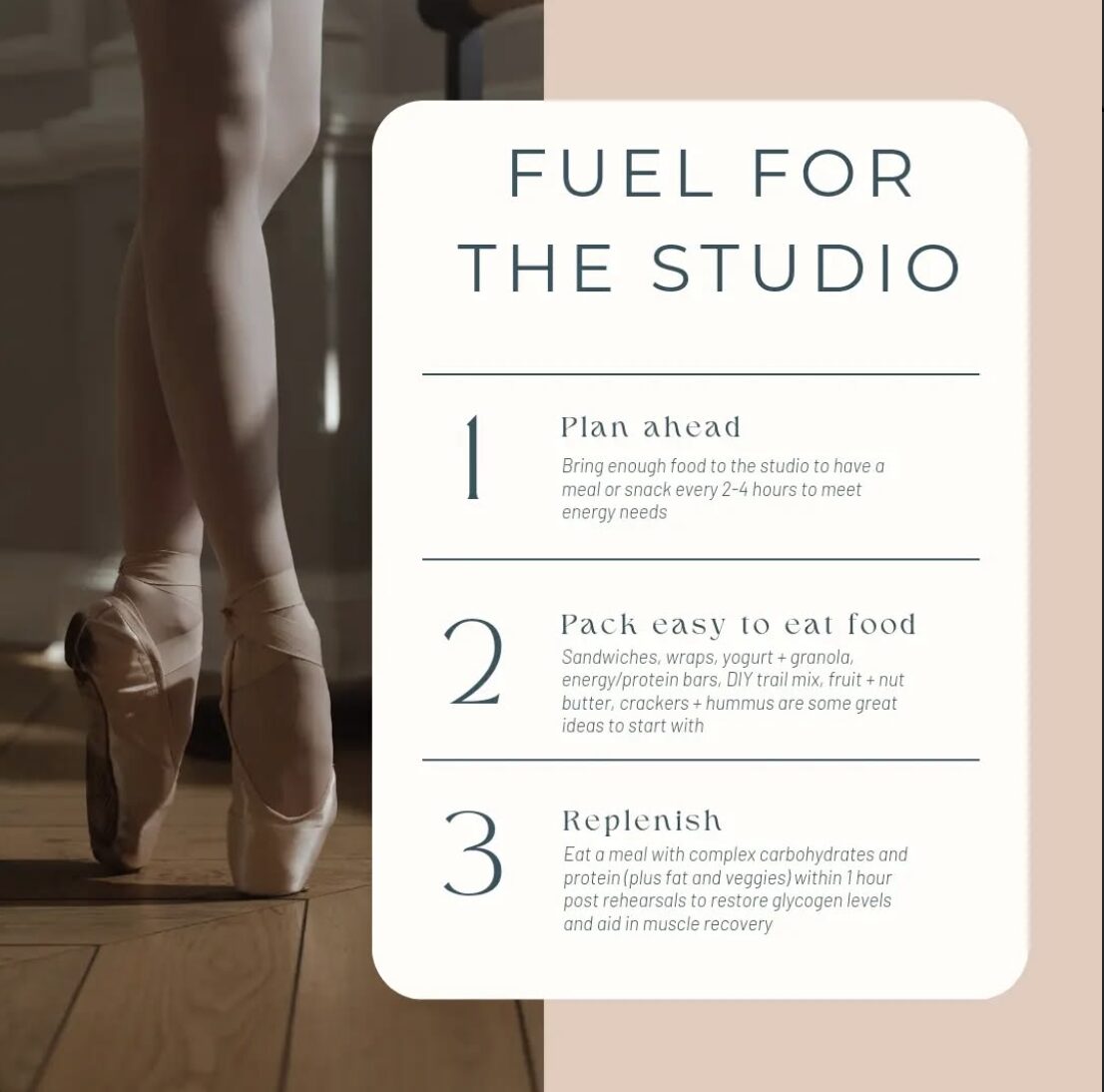 For nutrition education for dancers or athletes, people can email me at [email protected]