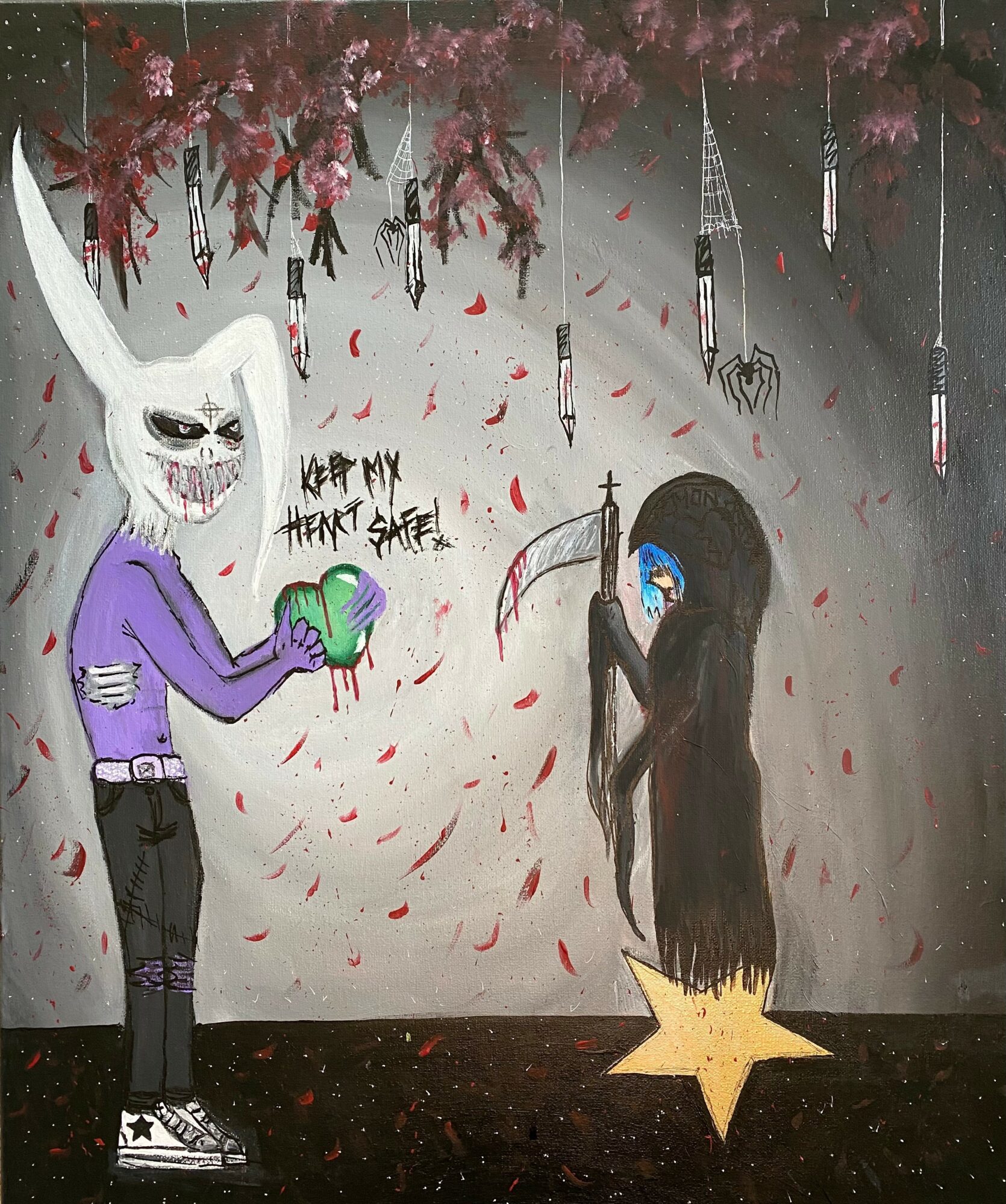 I make dark emotion filled paintings, with acrylic on canvas, expressing my inner soul feelings of love experiences I’ve been through.