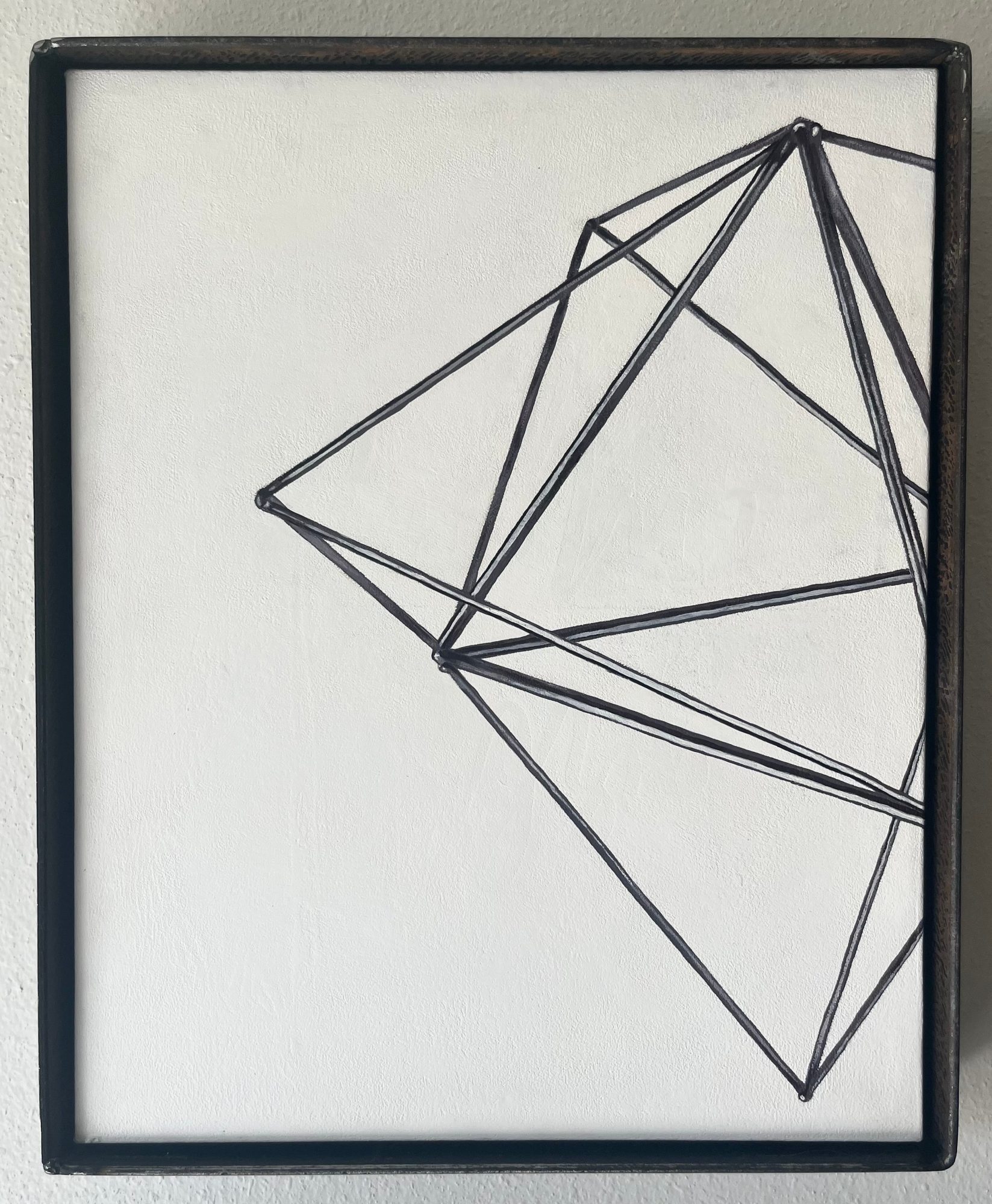 Today, I am sitting at an easel in my home studio in East Hollywood, fielding calls about a commercial residential installation in North Portland. My current body of work features painted studies of my geometric sculptures. The paintings highlight the subtle dimensionality of rod steel and 2D-3D interplay when the forms are flattened, as in a photograph. For the space in between canvases, I occasionally fabricate exhibition displays, teach, and work remotely for Past Lives. I help project managers learn how to build and coordinate custom moss board signs for local companies, install and maintain structures at bouldering gyms like crash pads and wall texture, and how to estimate steel fabrication for the occasional table, handrail, or bespoke swizzle stick request.