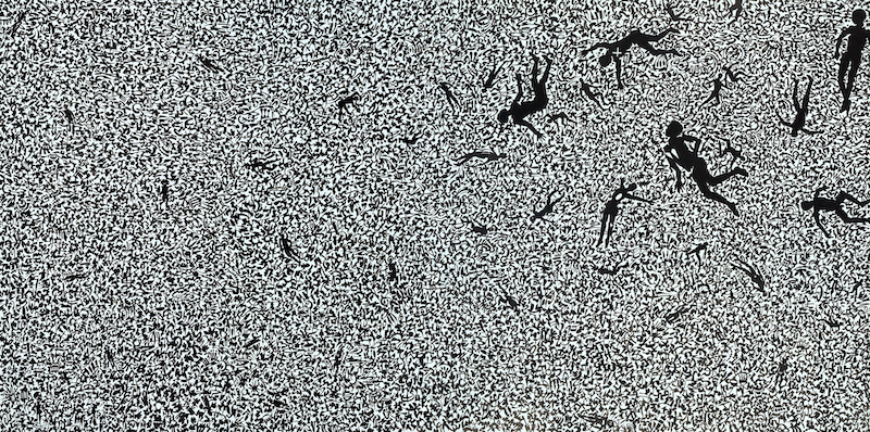 His most recent work, notably the Black Madonna and Halo series, plays with generally accepted notions of what constitutes sainthood and deification. His Madonnas are reinterpretation of the classical paintings by Rafael, Da Vinci, Bellini and others with references to racial supremacists , here characterized as victims in a revenge fantasy.