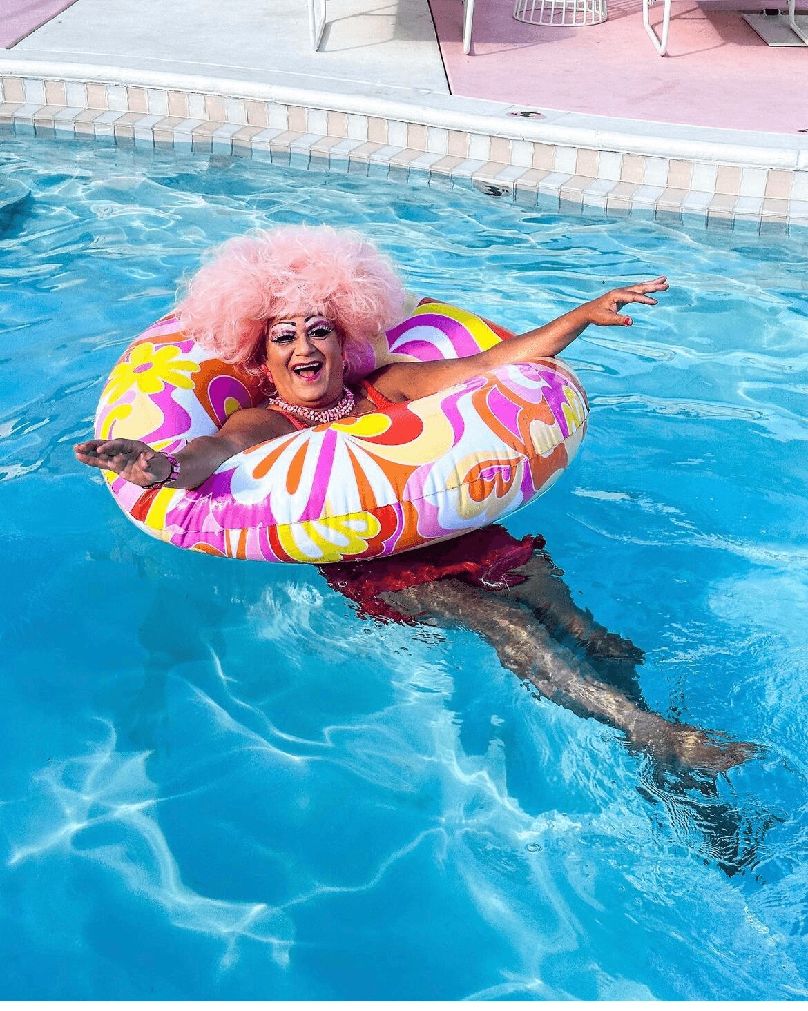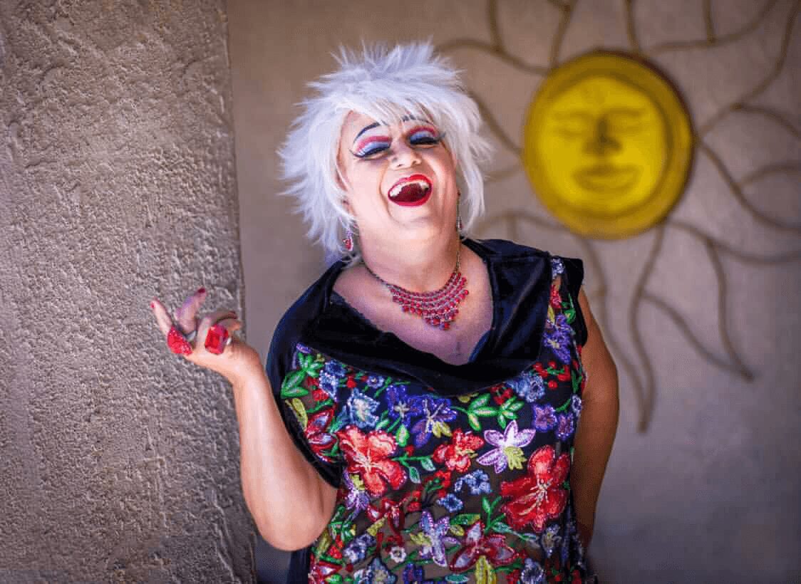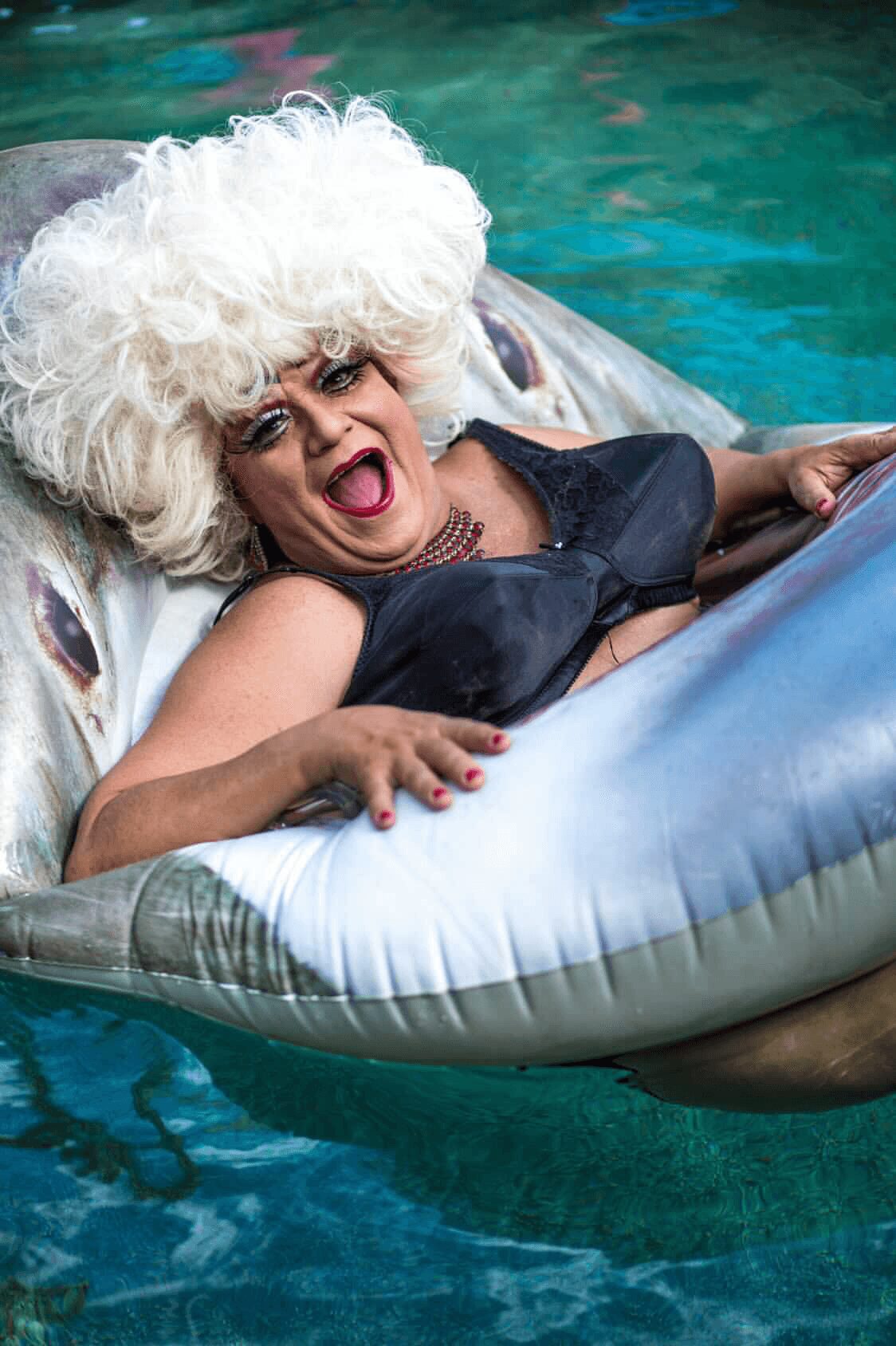 I made my way to San Francisco and went from supporting dragtress in the 90s to headlining hostess in the 00’s. I performed up and down the west coast and appeared at Faultline, the Abbey and Precinct in Los Angeles over the years. Out of necessity I became a DJ one night when the DJ didn’t show up…folks liked it and a DJ was born! Once I made a name for myself I began fundraising. There was no charity too big or too small and over the years I ran shows specifically aimed at raising money for the community with the Sisters of Perpetual Indulgence in San Francisco and now with the house in Palm Springs. In 2019 I was recognized by the California Booksellers Association for doing the first Drag Story Time at Books Inc on Market St in San Francisco. I made it into the pages of Vogue and Out over the years and in 2021 I was lucky enough to grace the cover of a coffee table Book by Devin Antheus and Harry James Hanson: Legends of Drag: Queens of a Certain Age. In 2020 I relocated after 30 years in San Francisco to Palm Springs.