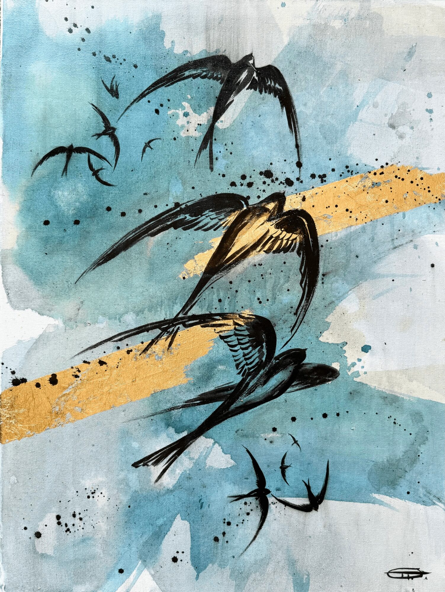 In creating my works, I use various techniques: a la prima, watercolour, large palette knife, spray paints also gold leafs. The technique of painting using gold is very old and interesting.