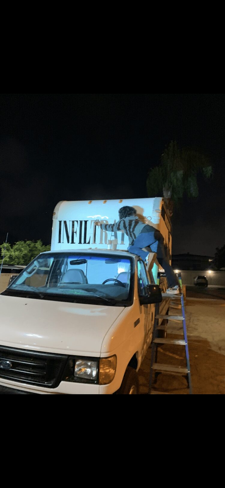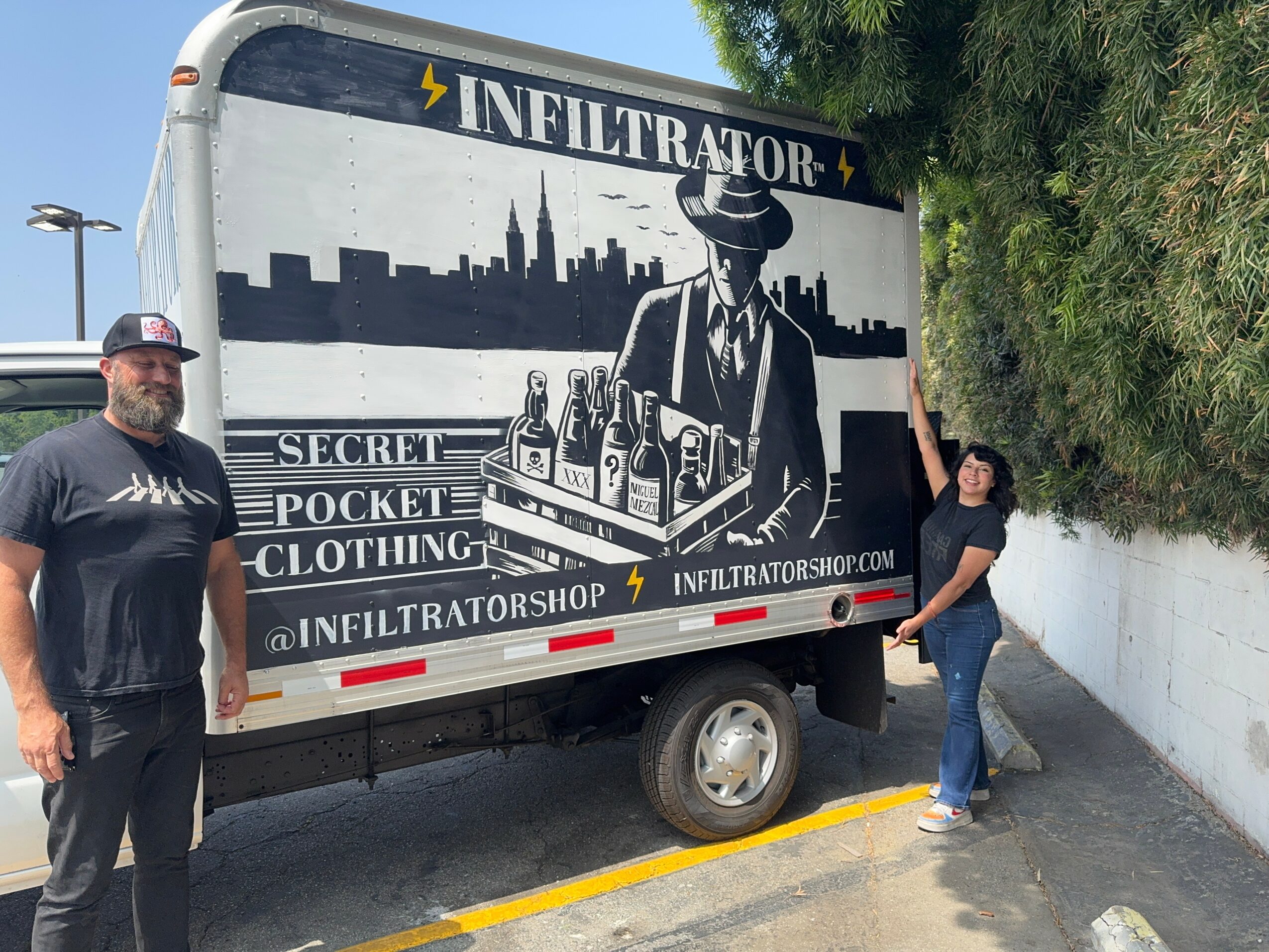 The infiltrator clothing truck: commissioned by Mike Boček (photographed beside the truck during daylight hours) he’s the one with the beard