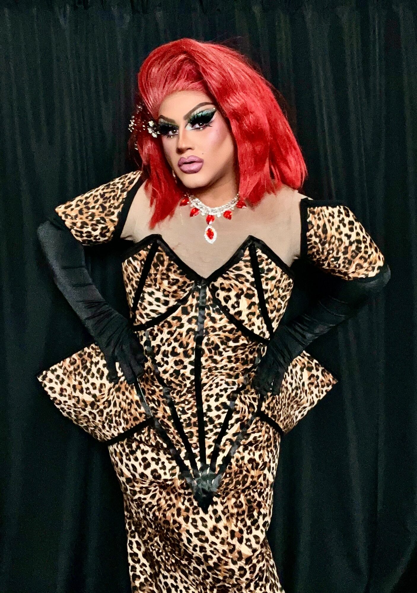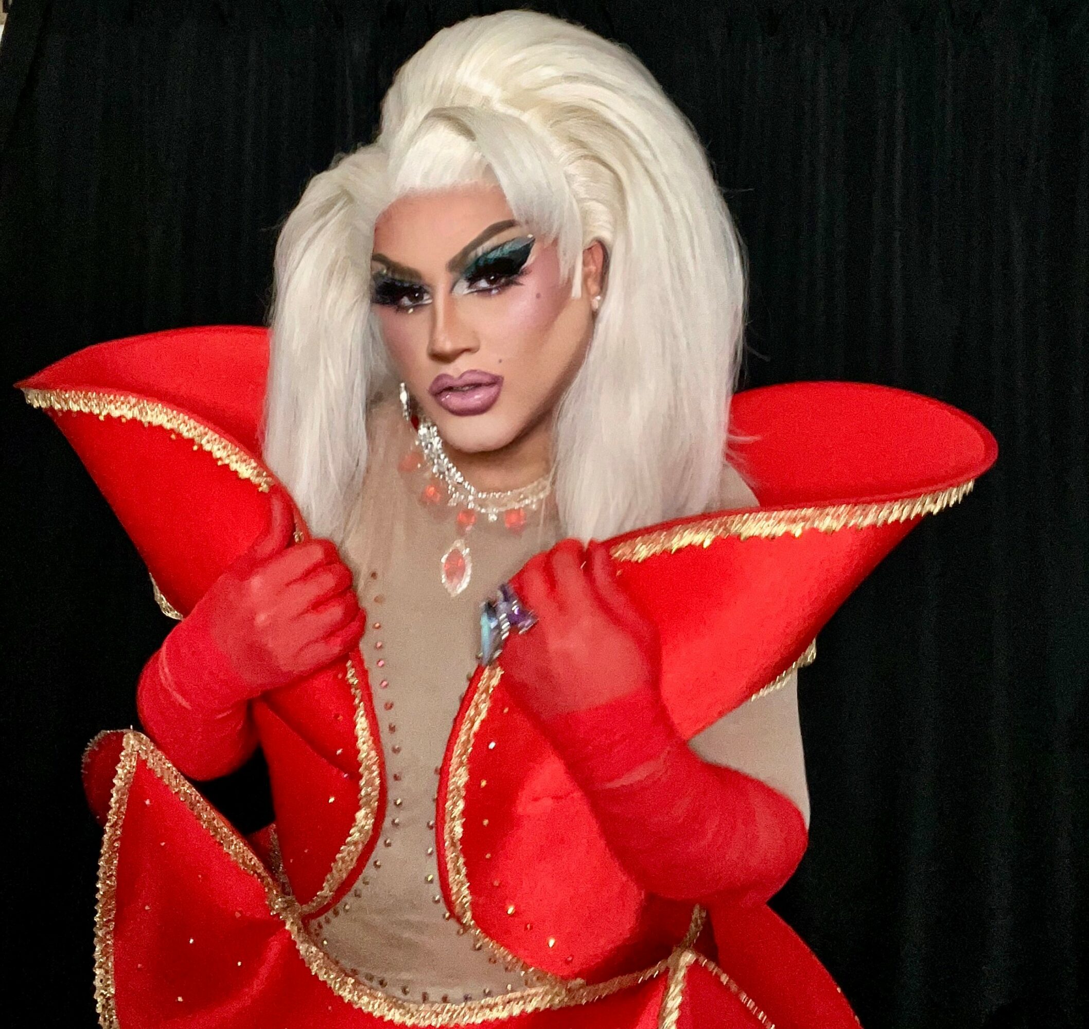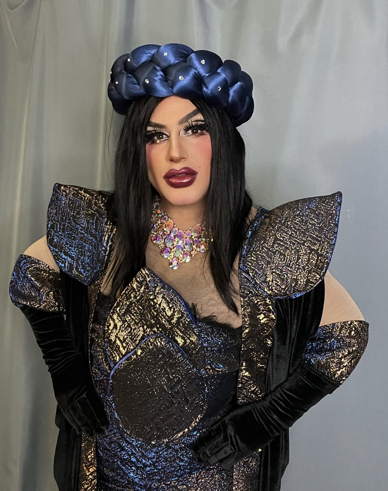 I express myself through the art in my makeup and ravishing designs. Something that sets me apart, is that I mix my middle eastern background and culture with my drag, being a pioneer Iraqi Drag Queen