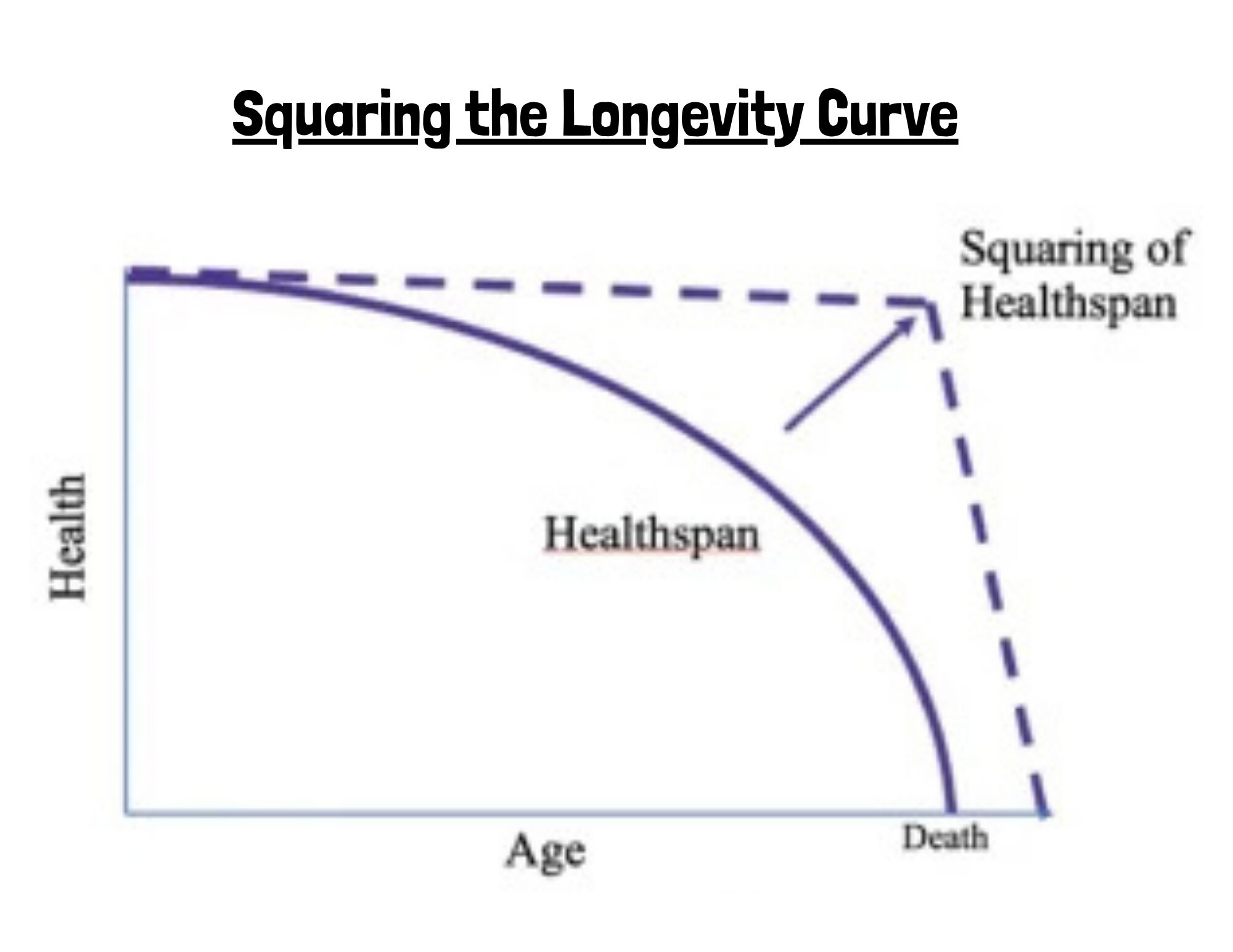 I also read about the concept of Squaring the Longevity Curve from a book called Outlive: The Science and Art of Longevity by Peter Attia. It is the concept of maintaining high function of cognition and mobility for the majority of one’s life, with a relatively short period of decline just before death instead of a gradual, prolonged decline in health as people age,
