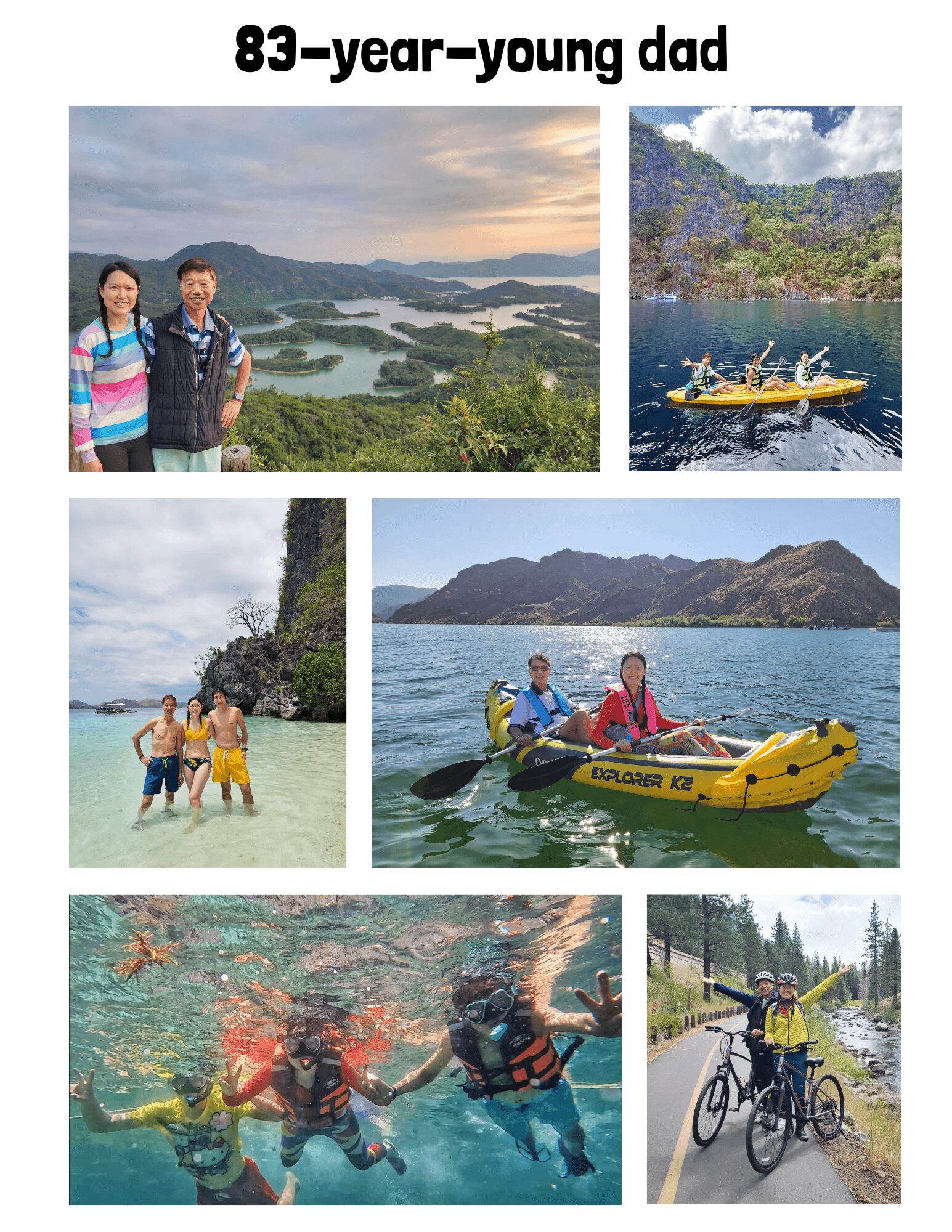 My 83-year-young dad would be the perfect example, He used to think he had to take cholesterol/diabetes medications the rest of his life, but now thanks to me helping his diet, exercise, and overall lifestyle, he is able to gradually get off them. He currently eats very healthy, mostly whole grains, seafood and plant-based proteins, eats minimal processed food and refined carbohydrates. He also walks 10K steps, goes swimming, does strength training every day and does lawn bowling twice a week. When we go on vacations together, he is able to join us for different excursions such as hiking, biking, kayaking, and snorkeling.