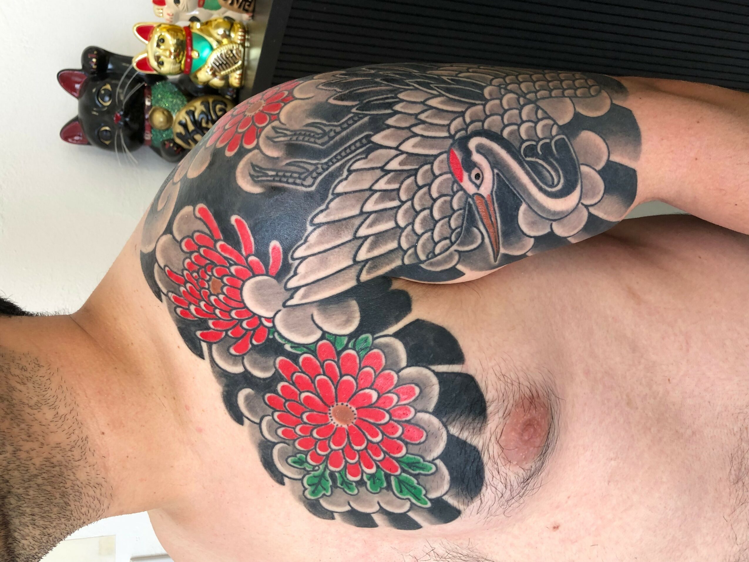 I was born and raised in Japan, so I specialize in traditional Japanese tattoos, drawing on the experience and knowledge passed down through that culture.