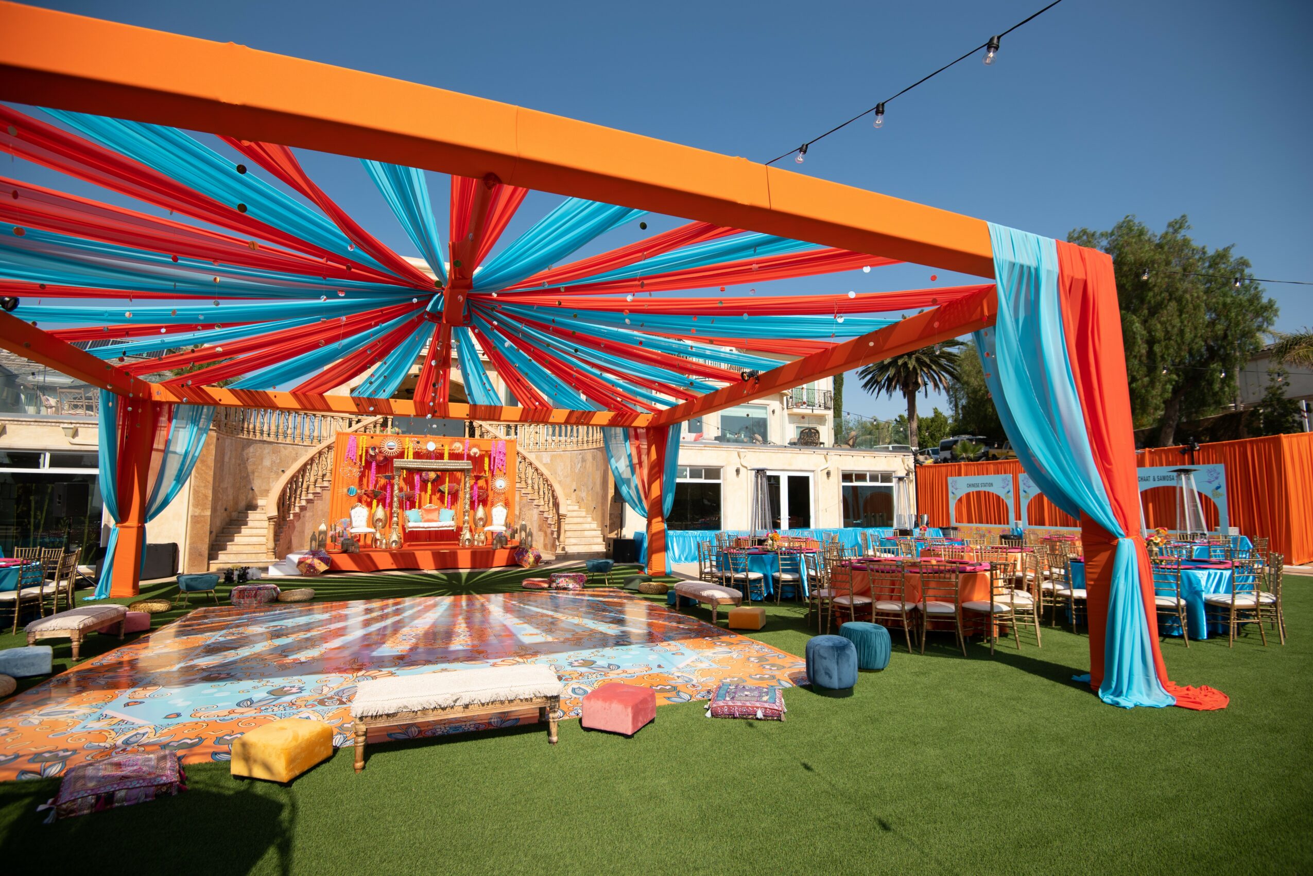 What sets us apart is that we are a true one-stop shop. We handle everything in-house, from florals to custom-built pieces, and offer a vast selection of décor and furniture rentals, including dance floors, draping, and more.