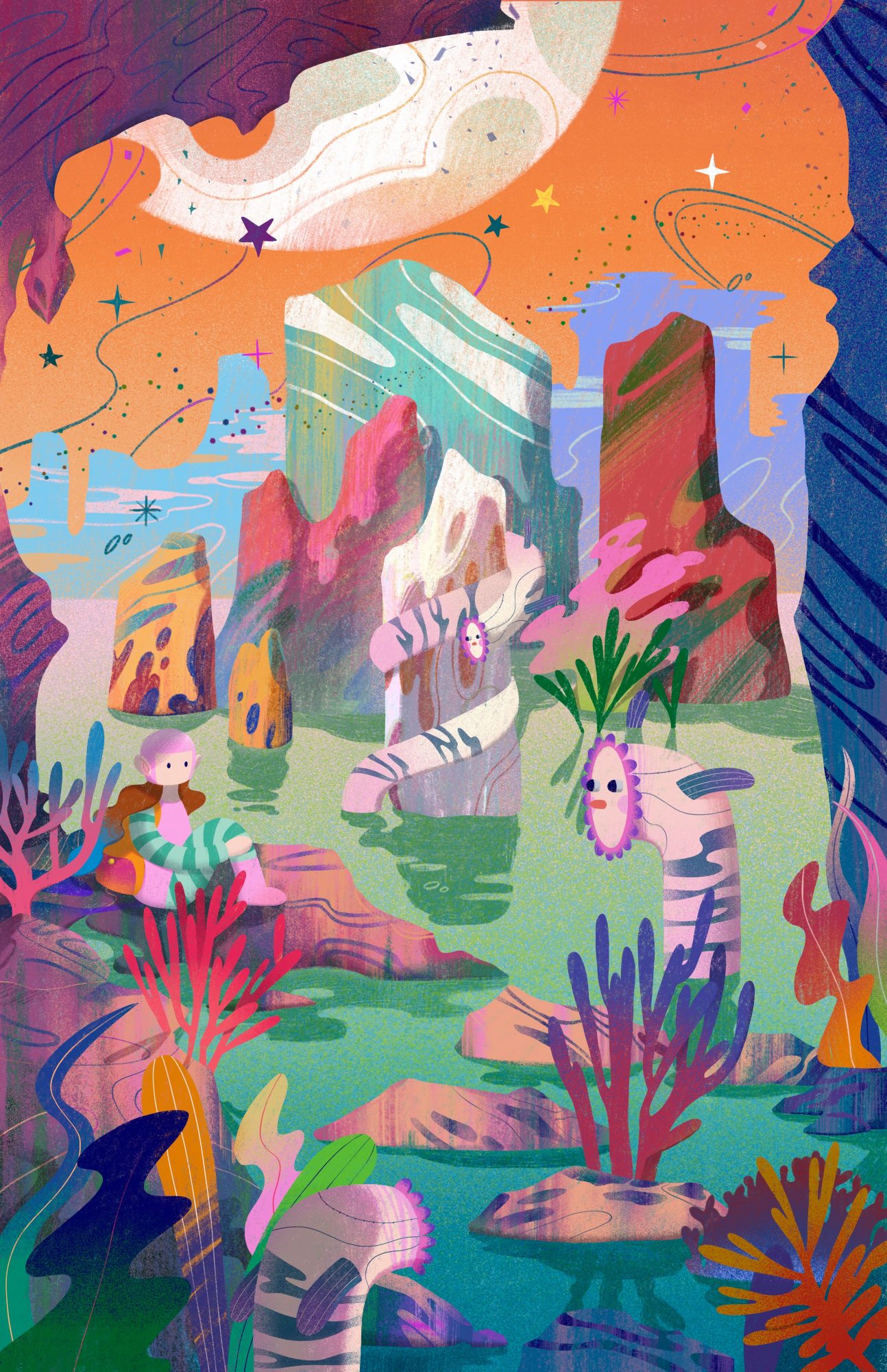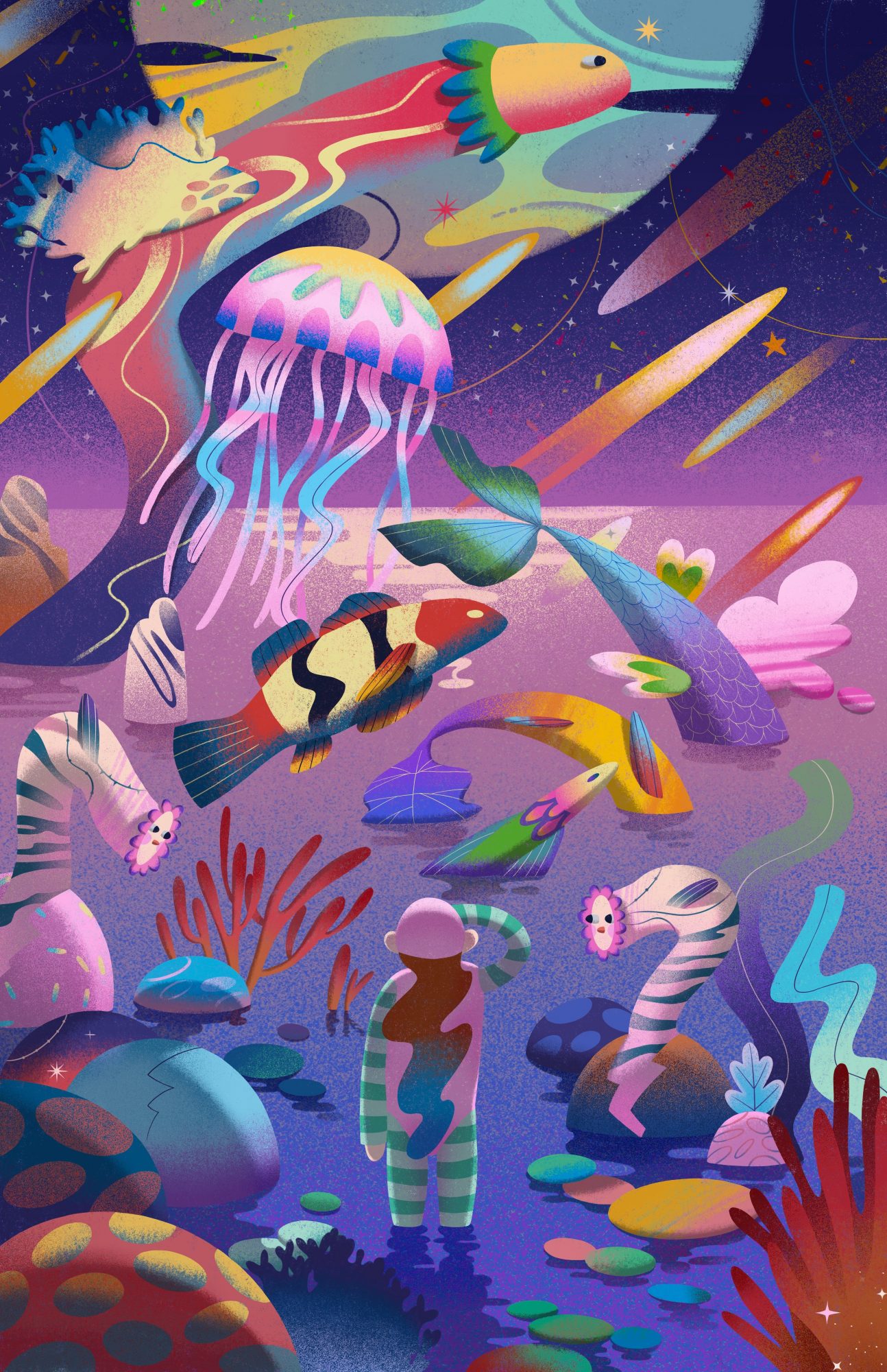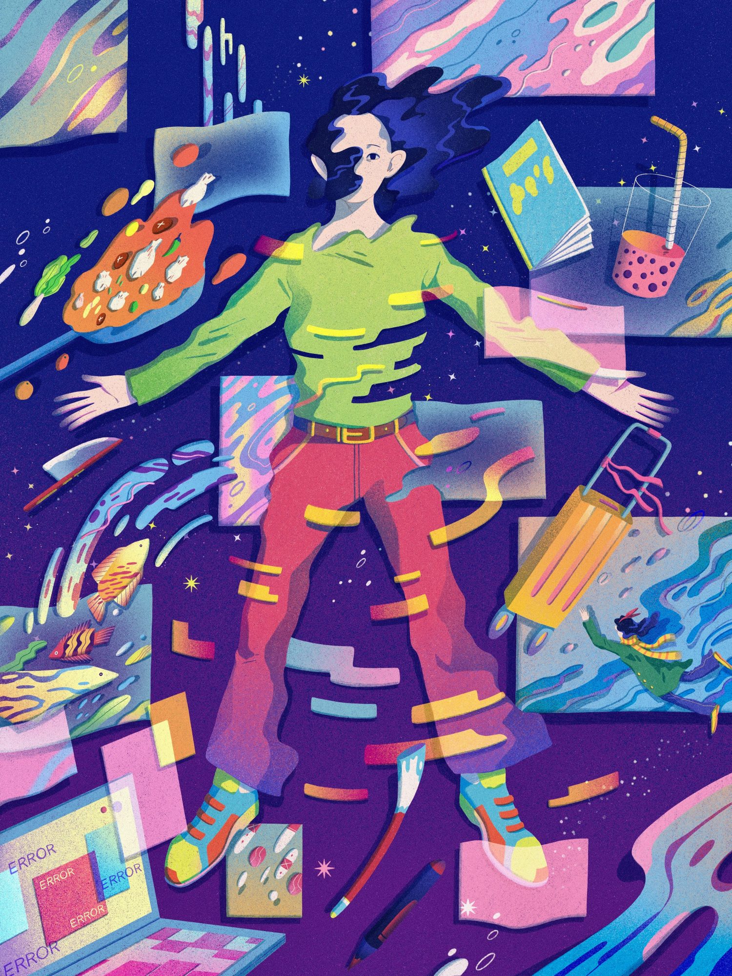 As an illustrator, 2D animator, and motion graphics designer, I blend the art of illustration and animation to create a creative style and rich color palette that make my art unique. Having grown up by the sea, the beauty of water and nature deeply inspires my work. My artistic mission is to create a rainbow of colors in each piece, subtly incorporating gorgeous elements. Inspired by everything from realism to science fiction, I use incredible colors and beautiful natural landscapes to create a dreamlike art world with solid visuals and lovely details through digital media.