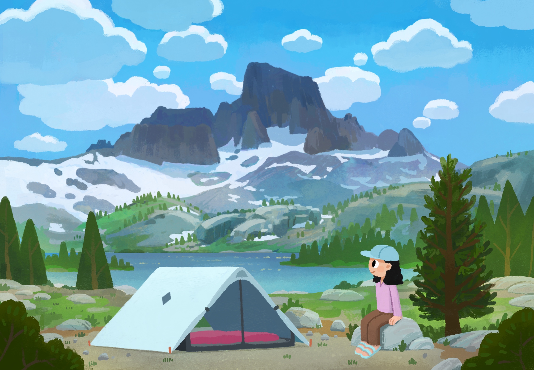 In my personal work I like to create paintings based on places I’ve been, most recently focusing on creating illustrations inspired by my time spent in the outdoors. Last year I got back into traditional mediums, painting in gouache again and experimenting with watercolor and colored pencils. It’s been a lot of fun and I feel that it’s influencing my personal style as well. I’ve also been interested in children’s book illustration lately and have been consciously trying to shift my personal work in that direction. It would be a dream to illustrate a book inspiring kids to get outdoors someday!