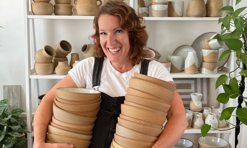 From the moment I first took a ceramics class in high school, I was hooked. But it still took me a 15 or so years before I launched Bowman Ceramics. During college and years later, I kept returning to the ceramics classroom any chance I could. There is something about working with clay that really connects with me. It’s a wonderful way to make and create, yet in the end these pieces serve a function. I took my first commission back when I was working as a floral event designer. My first calling was to flowers, and second it was clay. Reshaping something so natural into a new form has been the calling in my hands and my heart. The first large ceramics order I took was to make a set of mugs for a coffee shop. During that process of throwing the clay again and again, I realized how much I loved being a production potter. I spent the next few years working both with flowers and taking as many ceramics projects as I could to refine my skills and develop a following. At the end of 2021, I was able to leave the world of flowers completely and solely rely on Bowman Ceramics as employment. Over the past nine months, I’ve been able to make more work than ever before and it’s not slowing down yet! Additionally, I teach private ceramics sessions both at my house and for group workshops