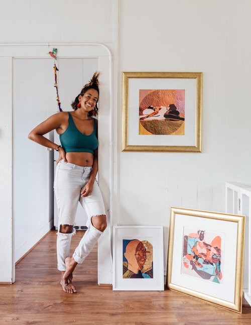 I’ve always been a creator. From as long as I can remember, I have been drawing, cutting things out of paper, experimenting, and playing. I feel lucky because I never lost that curiosity of exploration. I was blessed with parents who encouraged my artistic interests, so I never had resistance when I chose art as my major. I went to undergraduate at Allegheny College and chose studio art as my major with a focus in printmaking. In school, I had the opportunity to explore the printmaking process and all its variations that helped me to think of creating prints in layers and pushing out bulk work. I’ve always enjoyed making art at a very fast pace and am capable of pushing out bodies of work in a short period of time. Adrenaline helps to get me there and I’ve learned that my dry spells are my research phases where I am gathering inspiration for the next project. I took an elective digital art class where I learned to play around and create compositions in Photoshop and that is where the foundation of what I do now came from.