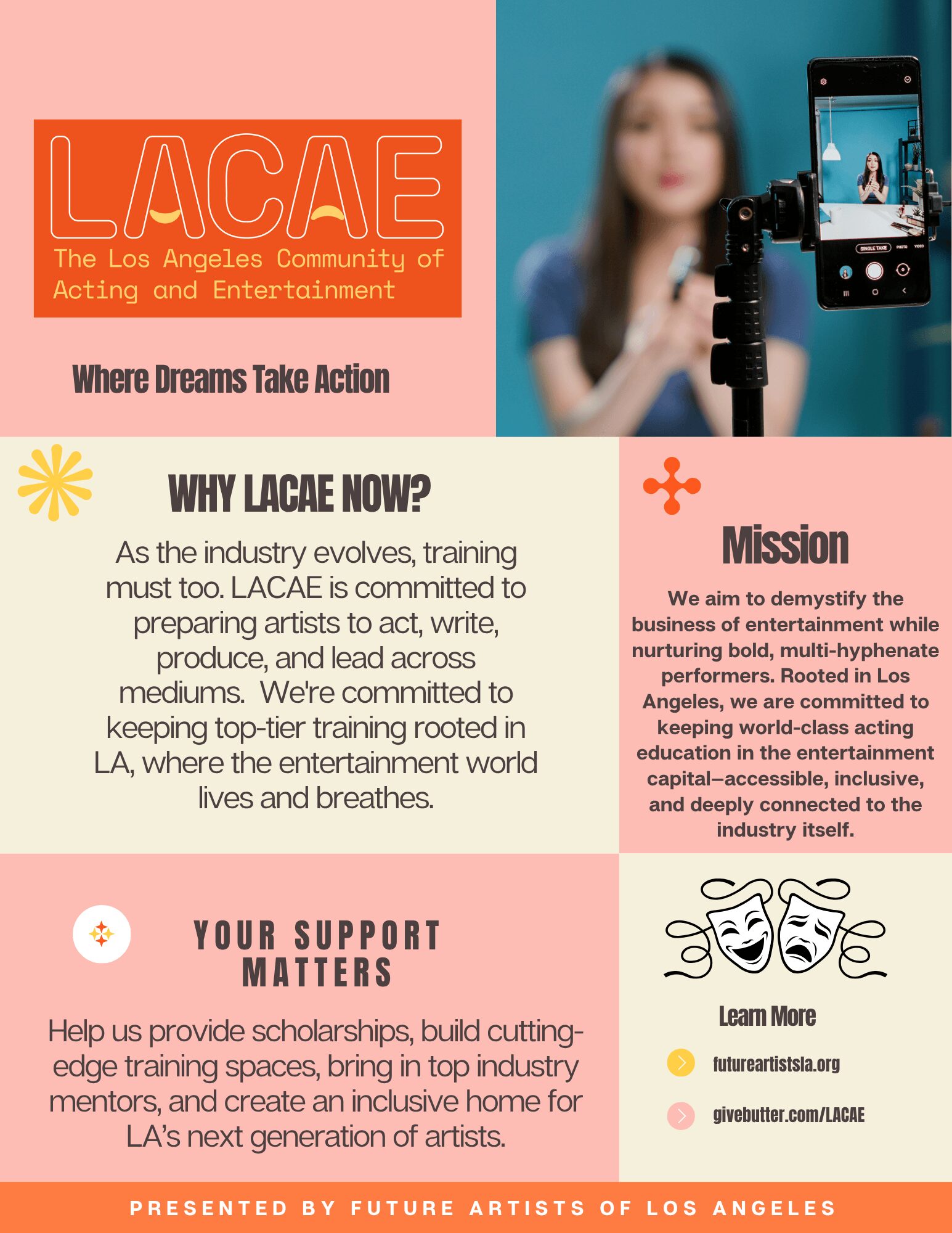 LACAE is a new kind of training center that honors the rigor of tradition while actively reimagining what performing arts education can be. We believe in preparing artists for the real industry, both technically and holistically, and helping them grow as creators, leaders, and multi-hyphenates. Our flagship program, ACT III, is a one-year professional training program where students sharpen their craft, build an industry-ready portfolio, and train with active professionals who are out there doing the work. It’s immersive, collaborative, and focused on equipping students to thrive, not just survive.