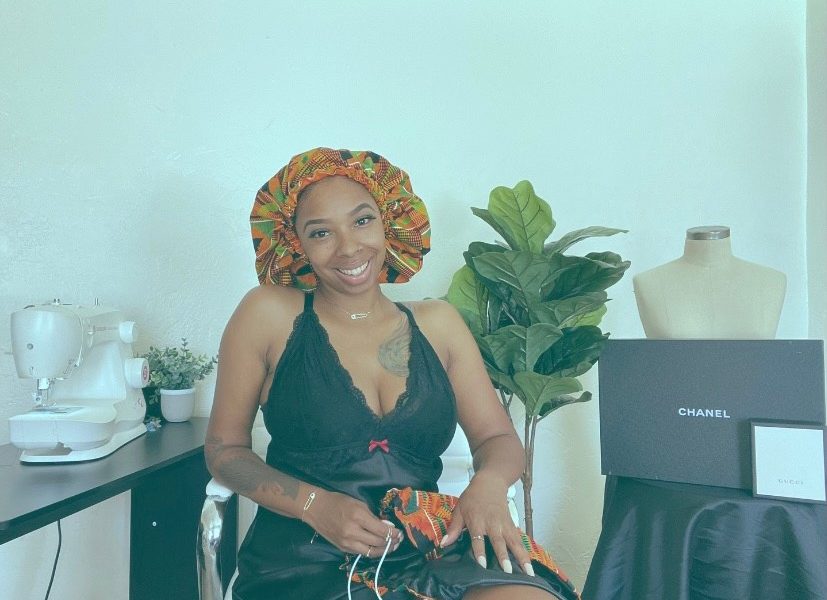 I had locs since birth, throughout my childhood and into my adolescence. On occasion, it crossed my mind that I wanted to cut my hair. When I got to college, I finally did my very first “big chop” which put an end to my lifelong loc journey. But it also started a new natural hair journey for me too. I began wearing different hairstyles as I enjoyed the versatility that I had with my kinky hair to do just about anything! But, the one thing that I often struggled with at the time was the actual health and cared for my hair. Transitioning from the natural state of having locs to a free-form state of kinky hair was an adjustment. It took me a while to figure out a hair regimen that worked for me and once I did, I stuck with it! I discovered that my hair was like a plant and that all it really needed was water, oil and TLC! My hair needs to be trimmed every three months, deep conditioned and kept in a protective style, more often than not. Ultimately, what was going to preserve my hair after doing my routine was a satin bonnet, simply because of its endless benefits! They retain moisture in your hair, prevent breakage as well as maintain twist-outs, braid outs and many other hairstyles. With that in mind, a light bulb definitely went off in my imagination!