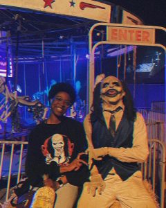 I’ve been working as a Scare Actor for the LA Haunted Hayride since 2019 playing Herschel the Ice Cream Clown and a variety of other spooky characters. Whether it’s for the Hayride, their promos, special events, or even “The World According to Jeff Goldblum” on Disney+, I am in love with this job. I love that I get to scurry around the town of Midnight Falls scaring the bejesus out of folks, it’s an honor to provide them with a scare and sense of relief followed by some laughter when they realize, “Oh, I’m okay! I did it!”