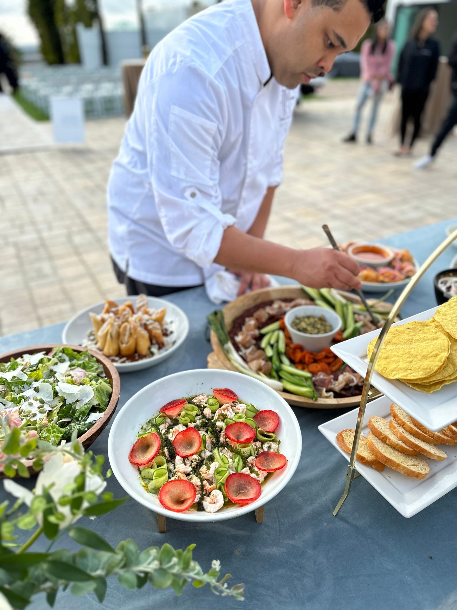 Most of my culinary background has been in Mediterranean/ middle eastern cuisines. Nicole, in French and Asian cuisines. From fine dining restaurants and catering in New York City to the hills of Temecula Ca. We have learned a great deal of flavors, styles of cooking and hospitality toward our guests to create our personalized chef experience. Between that and our passion of going out to experience a variety of dining experiences ourselves, learning from others has helped us curate these experiences we offer our own guests.