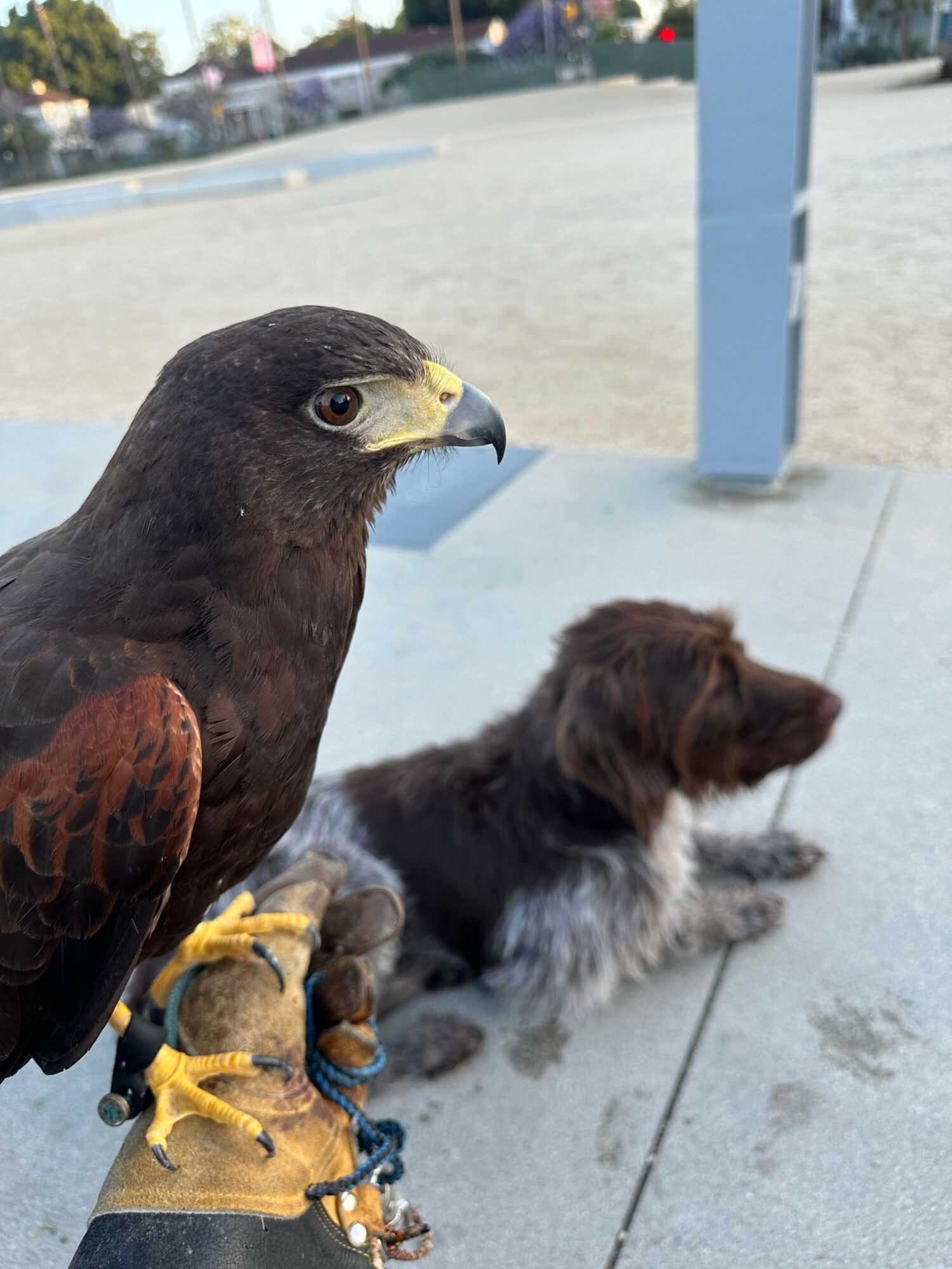 During the day, Kristina works as an abatement falconer across Ventura, Los Angeles, and Santa Barbara counties. This means she uses trained hawks, falcons, and owls to safely deter pest birds from job sites—most often crows, pigeons, and seagulls.