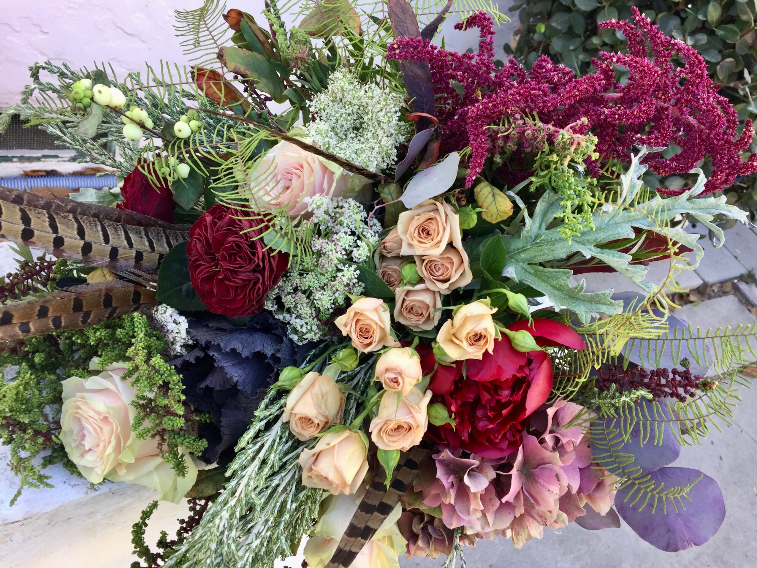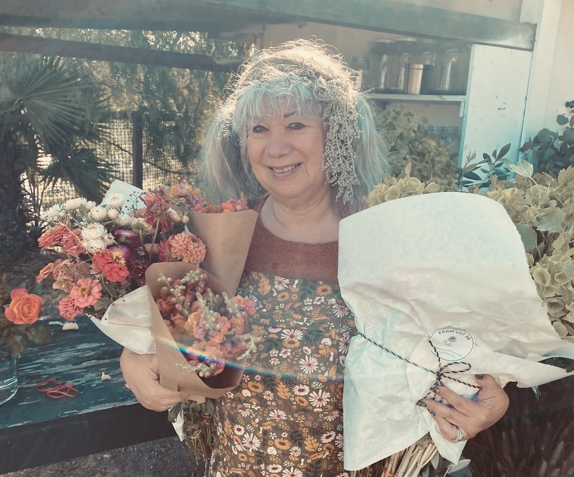 I’ve always been an artist and dabbled in fashion, vintage and antiques, crafts, but in 1980 found myself and my husband in an opportunity to acquire an abandoned flower shop. He had prior experience and to me it was just another medium. I incorporated my love for color, texture, and antiques in building my floral art. The store took off because at that time the concept was very unique. We called it “ Rainbows”. We were located in the two year old shopping center called The Marketplace in east Long Beach. It morphed into a combination of European style flower market , country store featuring multiple artist’s folk art creations, antiques, and was quite a unique gift shop Our children were toddlers when we started, but grew up in this family business., eventually helping to run it during the thirty years it was there. My husband and I parted ways in 1995 and I went on to open a small shop in the Atlantic corridor of Bixby knolls in 1997. When 2001 happened, there were no events, no celebrations, no business. I closed up shop and freelanced for a while. I also taught floral, crafts, and cooking classes for parks and recreation. I did craft shows and sold at the antique flea markets. The gypsy life was fun for awhile. These days I work from a home studio, doing what I love most…. Floral design. I create florals for all occasion and special events and love doing weddings. I’m going into my 45th year of designing and still love what I do!