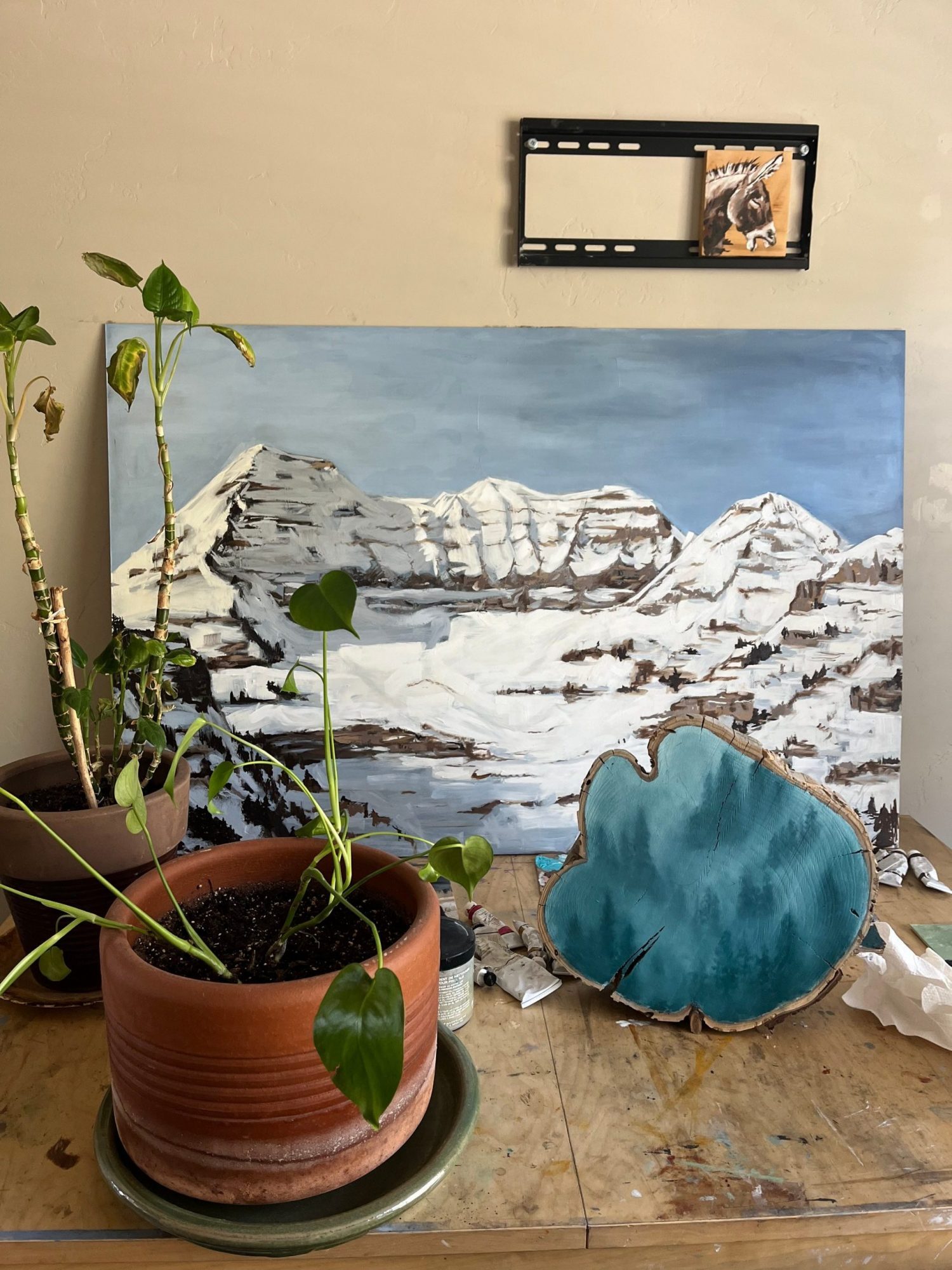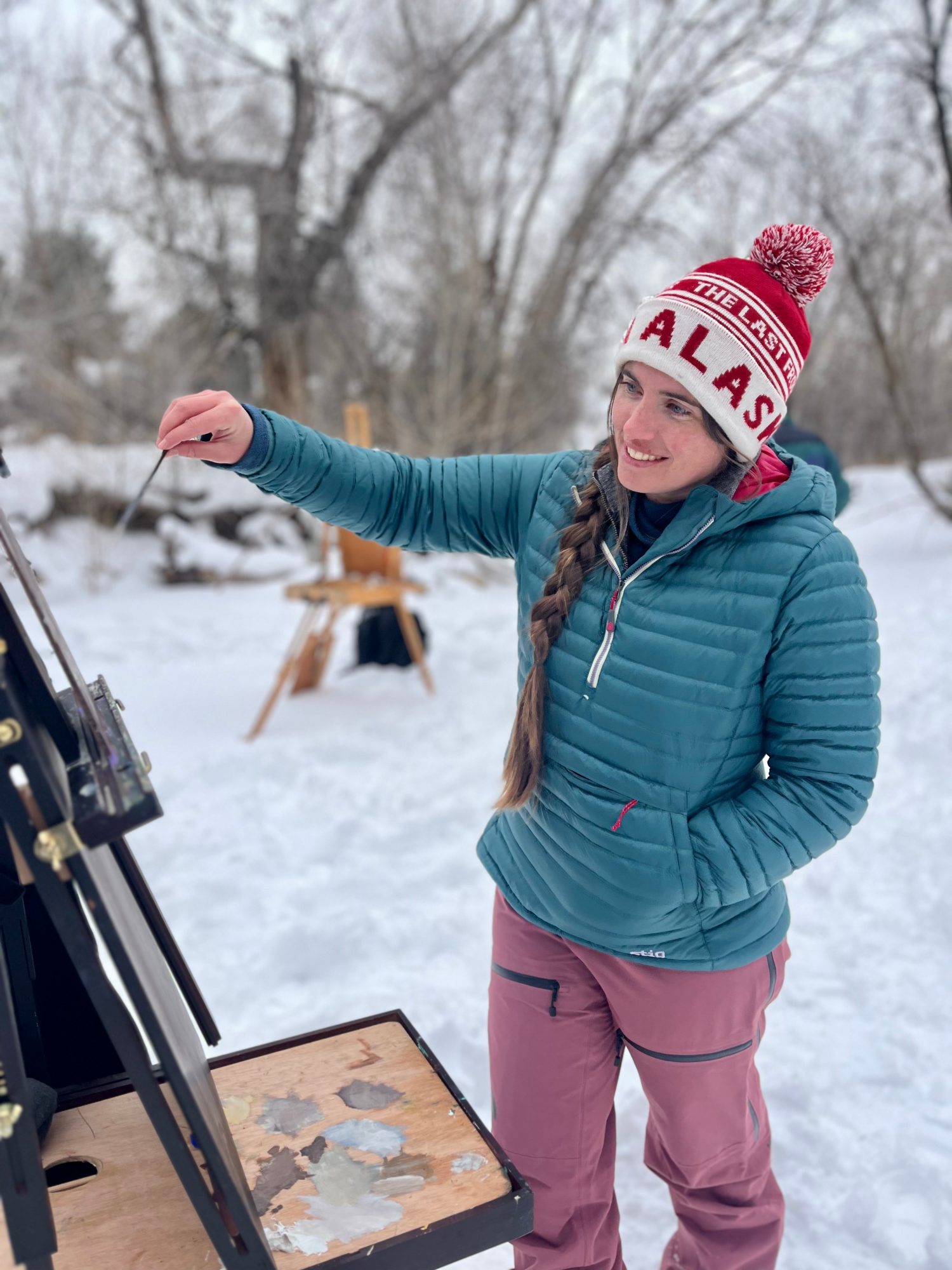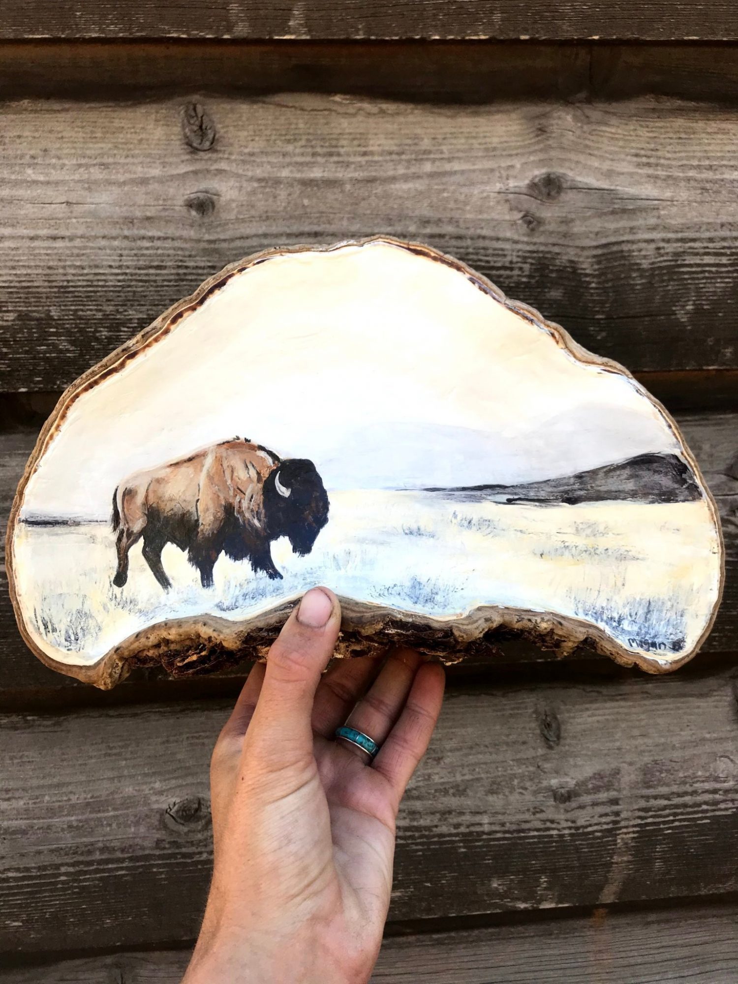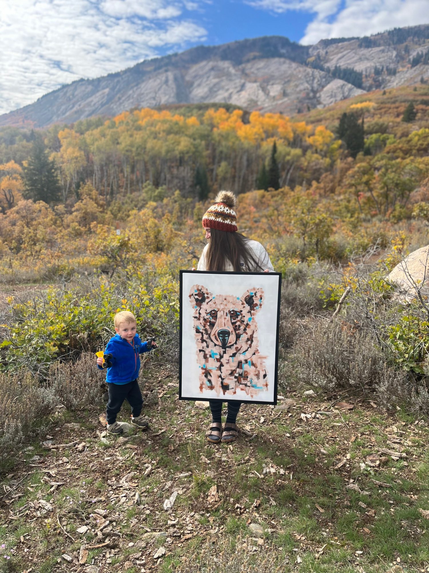 I’m an artist who is inspired by my outdoor lifestyle. A lot of my paintings originated from my time spent in Alaska. My husband would fish, and I’d sit on the rocky beaches with my paints, I would actually use the sea water as part of my watercolor paintings. Dipping my brush in salt water and painting starfish, whales, otters. I love looking back on these days. My art takes form around my adventures. Me and my kiddo go play outside in the mountains constantly, hiking, skiing, camping, horseback riding, mountain biking… All of these outdoor activities fuel my art passion. During or after our adventures, I have an even stronger need to pull out the paintbrushes; how else am I supposed to capture the beauty and feeling of this world around me? I love painting horses, bison, and moose but also mountains, pine trees, and unique sceneries from adventuring. The outdoors and art go hand in hand for me.