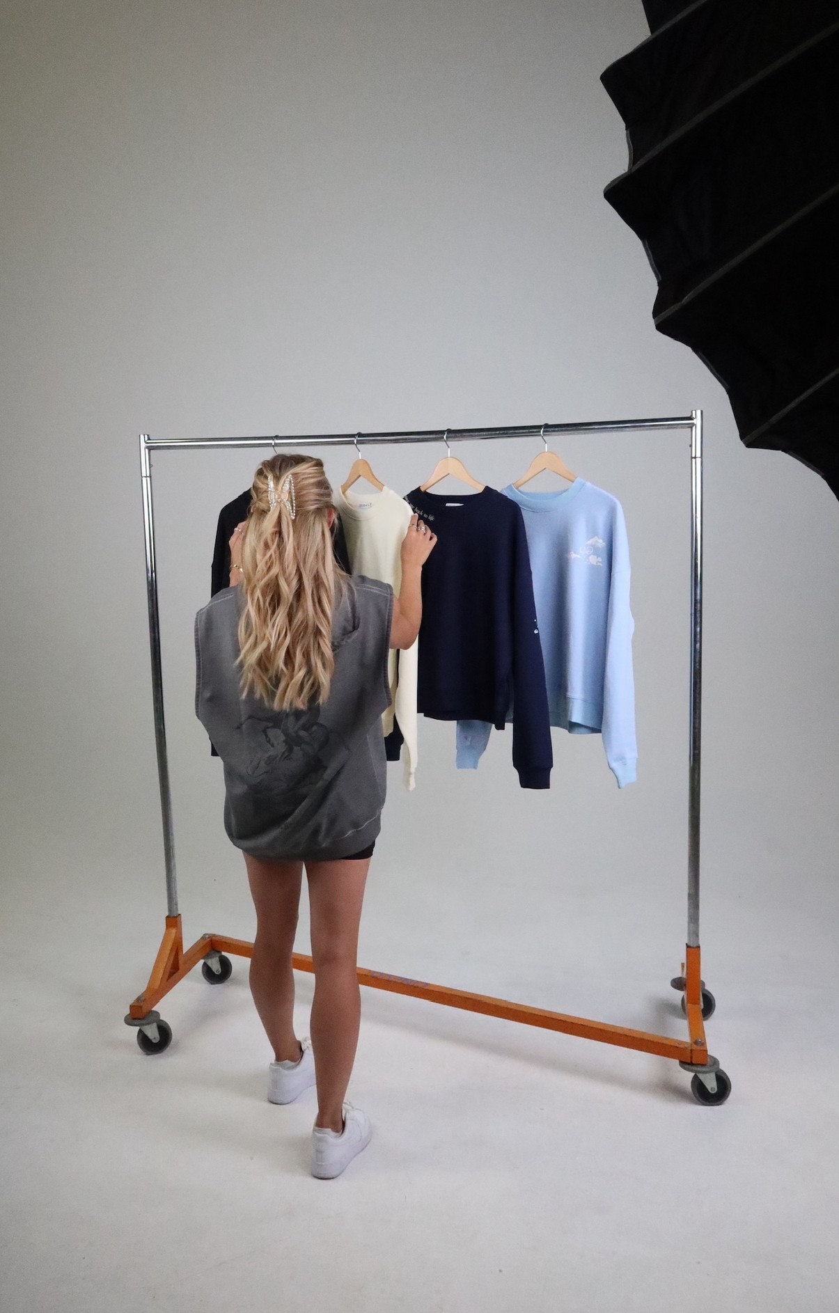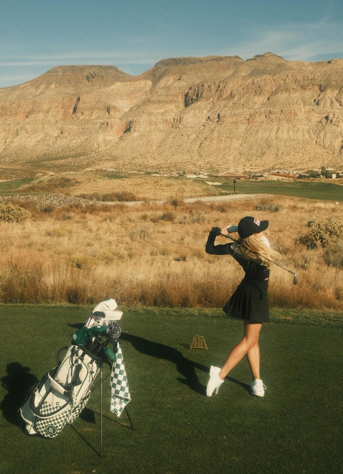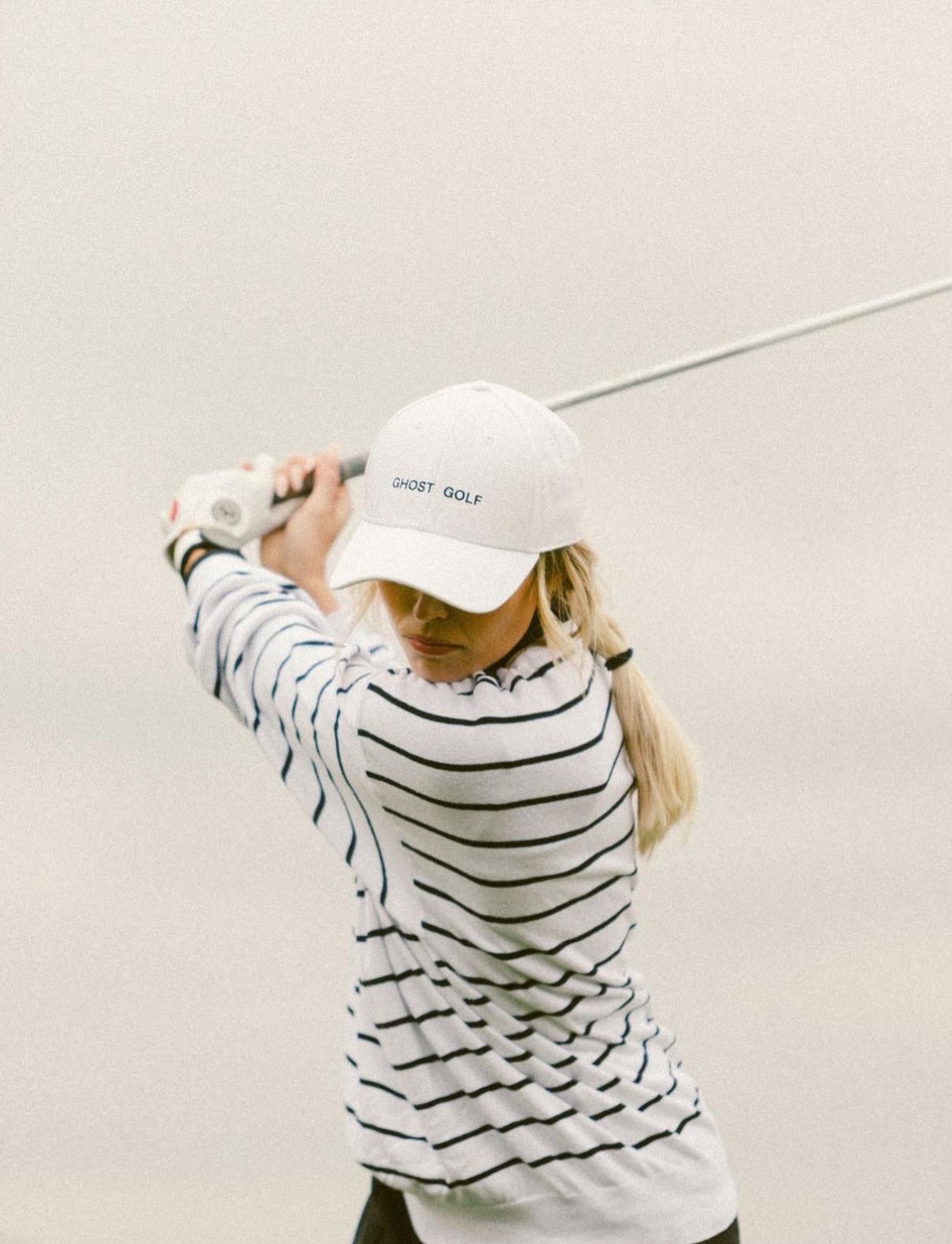 A little over a year later Covid hit, I went home to Indiana for a few months, shot whatever brand deal I could get to keep me busy at home, and picked my golf clubs back up for the first time since I graduated high school. Tiktok was on the up, and I started posting trending sounds of me golfing (+ yes, lipsyncing) on the course. I guess seeing a cute blonde girl swing a golf club was a rarity. When I got back to LA, I was booked for a couple of golf jobs based off my swing on Tiktok and was also asked to design a women’s golf line called Heat in collaboration with a brand called Swingdish. I eventually modeled for a brand named Ghost Golf, who later asked me to interview for their assistant Creative Director position based on my involvement and ideas from the shoot I modeled for them on. I ended up accepting the job as a freelance CD while still working as a model and influencer with other brands on the side. This is where I really found an outlet for what lights my soul on fire. I have never grown or felt so aligned in my career than I did when I was working at Ghost and watching the success of the company grow and be recognized. The modeling and influencing was great, but it never felt like there was longevity in what I was doing but building a brand and seeing my ideas come to life and be effective was so rewarding and gave me so much value.