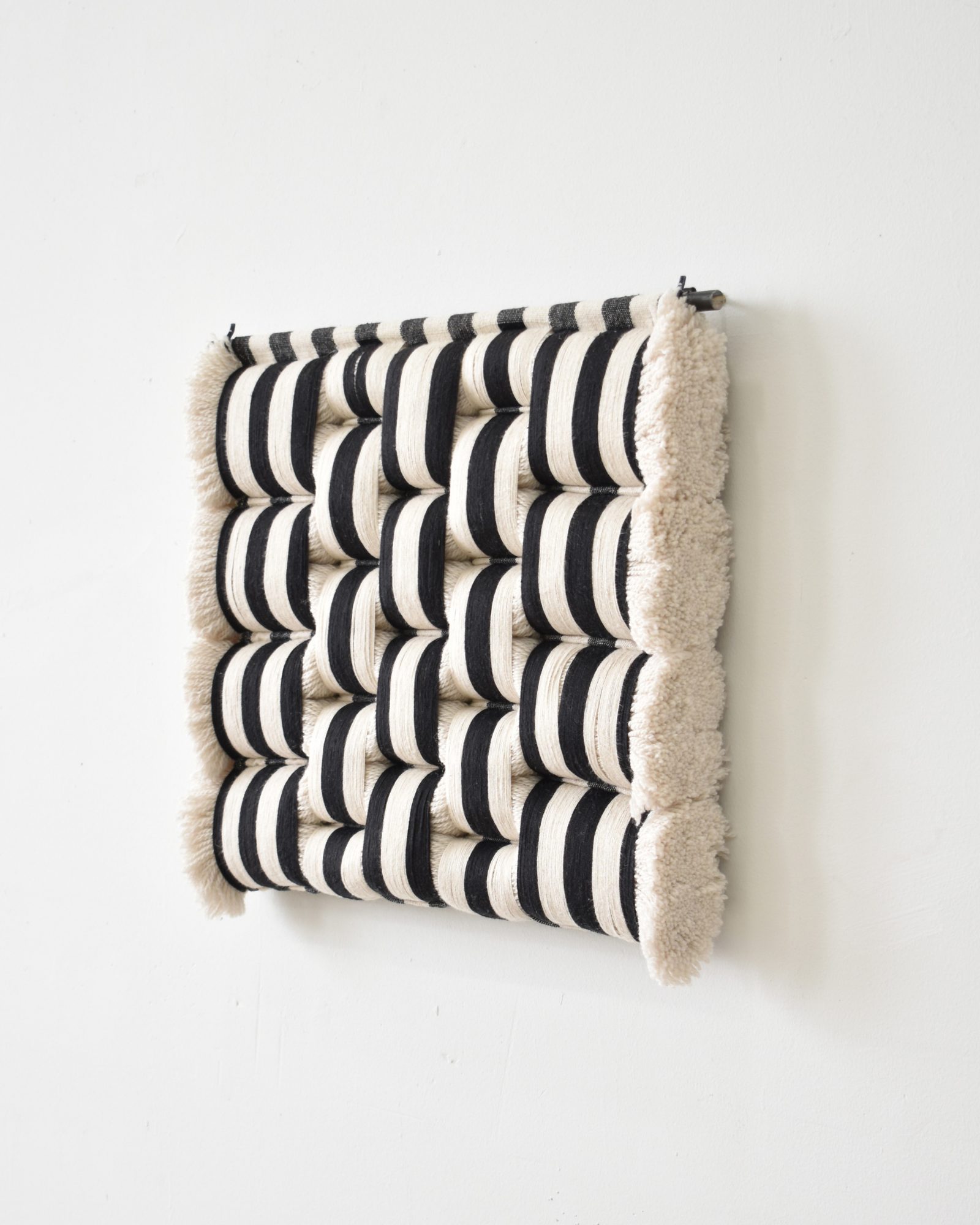 RISD led me to a job in the interior textiles industry in New York, where I designed upholstery and drapery fabrics to be produced on industrial jacquard looms. I was able to travel to Italy, India, Germany and across the US to visit with weaving mills and collaborate closely with their designers, who are master artists themselves. While it was a total dream job, something in me was itching to get back onto a traditional loom and work with my hands again; to make work that didn’t have utilitarian constraints. I wanted to make sculptures. I started my art studio on nights and weekends while I worked full-time, and eventually started showing and selling my work. I left that job in 2019 to focus on my art.