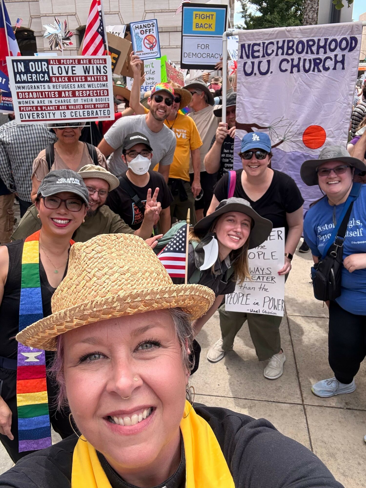 I believe that we are at a cultural tipping point, brought about by the abuses by our government and other power structures. The people are demanding a more just and loving world. As a Unitarian Universalist, we center Love in our values and actions. I can see how many people are inspired to action right now because they understand what’s at stake for ourselves and for our neighbors. I look forward to continuing to unapologetically and publicly recenter love in a world that seeks to divide rather than nourish us.