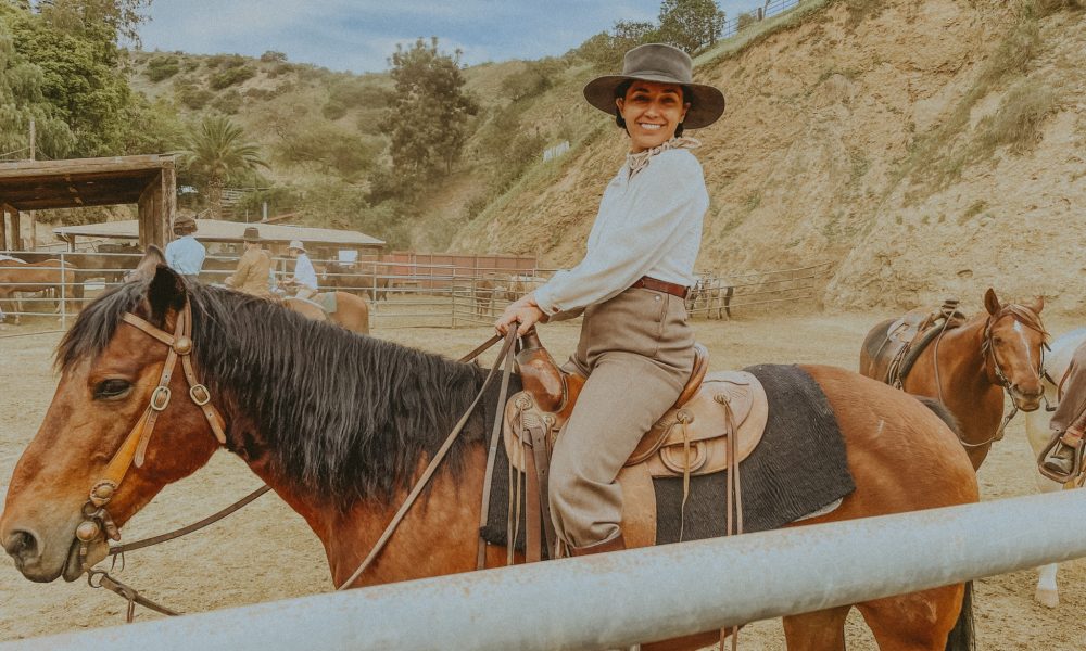 I still rode horses a couple of times a year when I would go home to visit family but never had I imagined making a career out of that thrill here in LA. Having discovered what I had access to, my aunt gifted me 5 weeks of lessons to see if I really wanted to make my childhood dreams come true. Those five weeks came and went, and all of a sudden, I was the class assistant. At the time, HBO’s Westworld was becoming wildly popular. THAT was the show, type of show I wanted to be cast in. I said that aloud and often. And then I was working for Scott Perez, the Wrangler FOR Westworld. It was a pretty exciting time, getting those first little riding jobs on set. I remember feeling nervous with imposter syndrome but at the same time, filled with that type of joy you get when you are truly having fun.