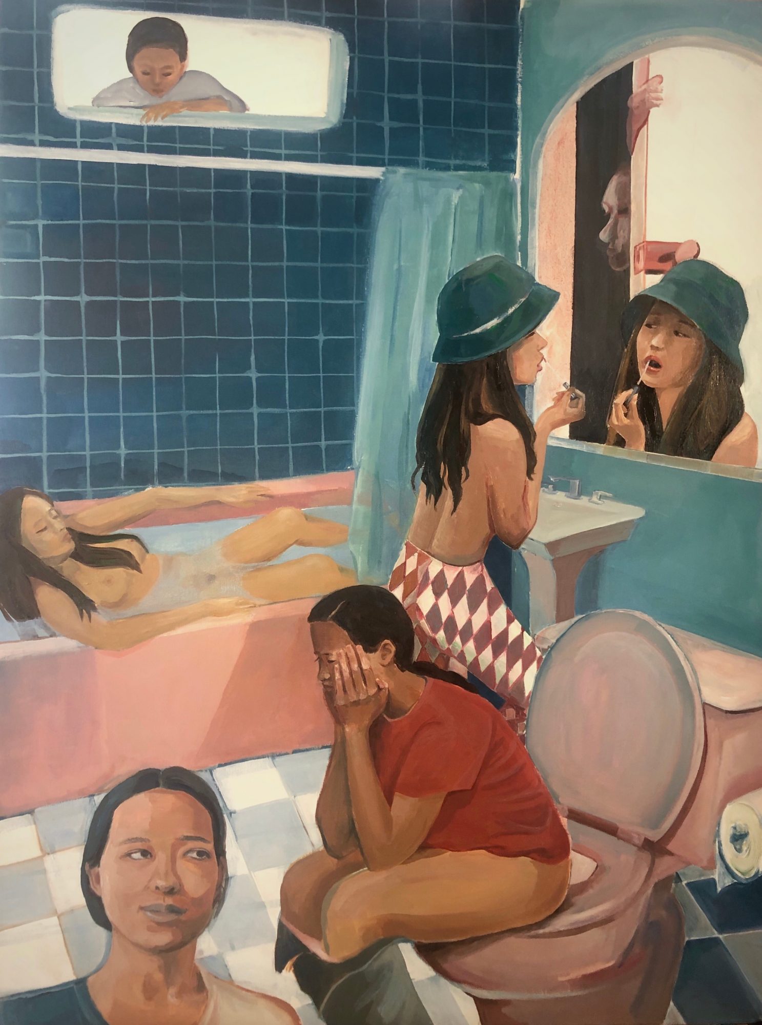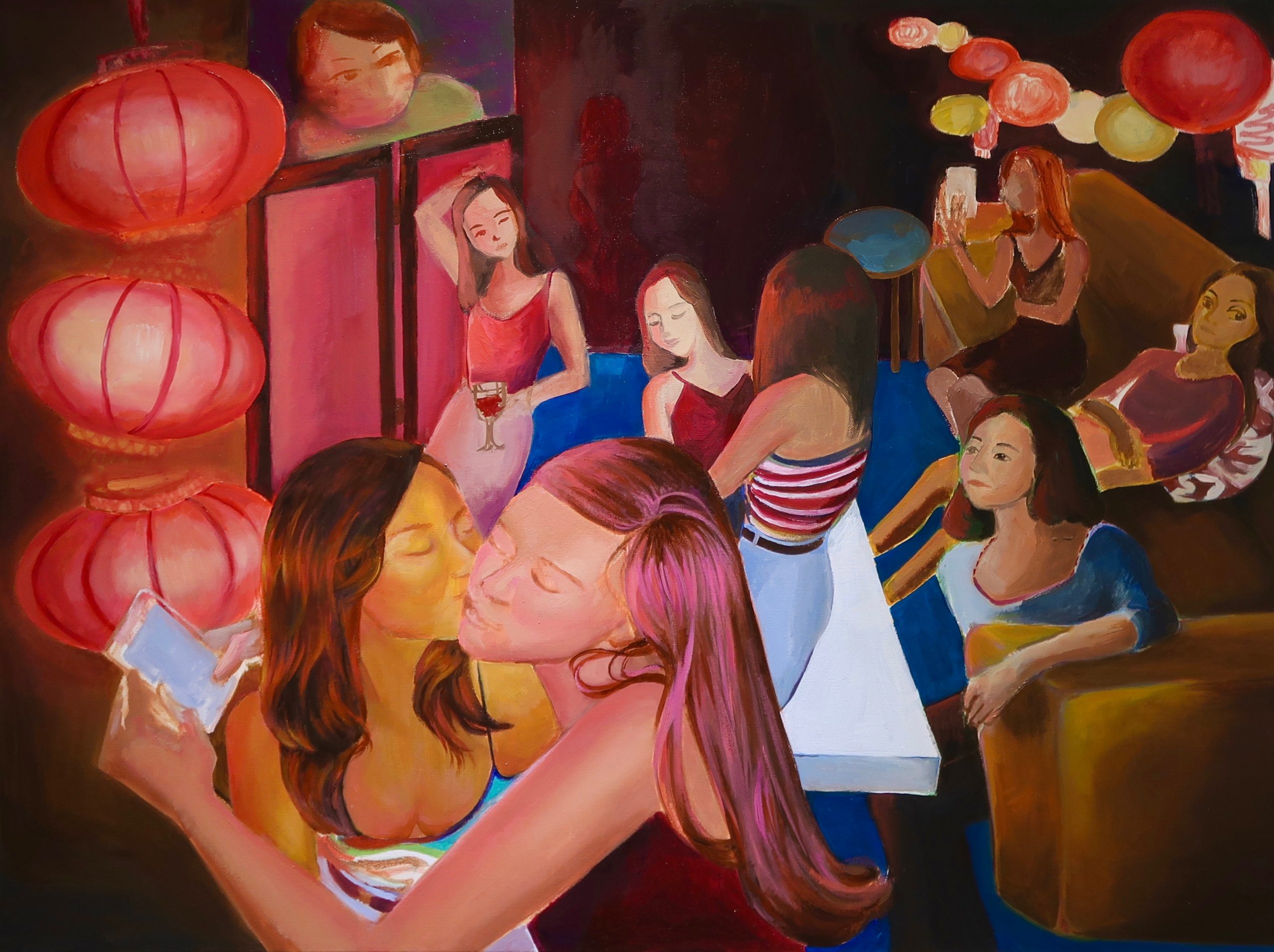 I see the creative challenges I encounter at the moment as an opportunity for me to dive deeper into the issues, which could either be technical or intellectual. One of the current challenges is how to make the narrative component stronger in my paintings. Everyone enjoys an interesting story. Since I would like to capture the complex, multi-layered dimensions of women’s self-identities in my work, I am learning to create a more cinematic picture for my audience to look at within a two-dimensional canvas space. I’ve also started to introduce creative writing into my art practice, which has helped to expand my imagination.