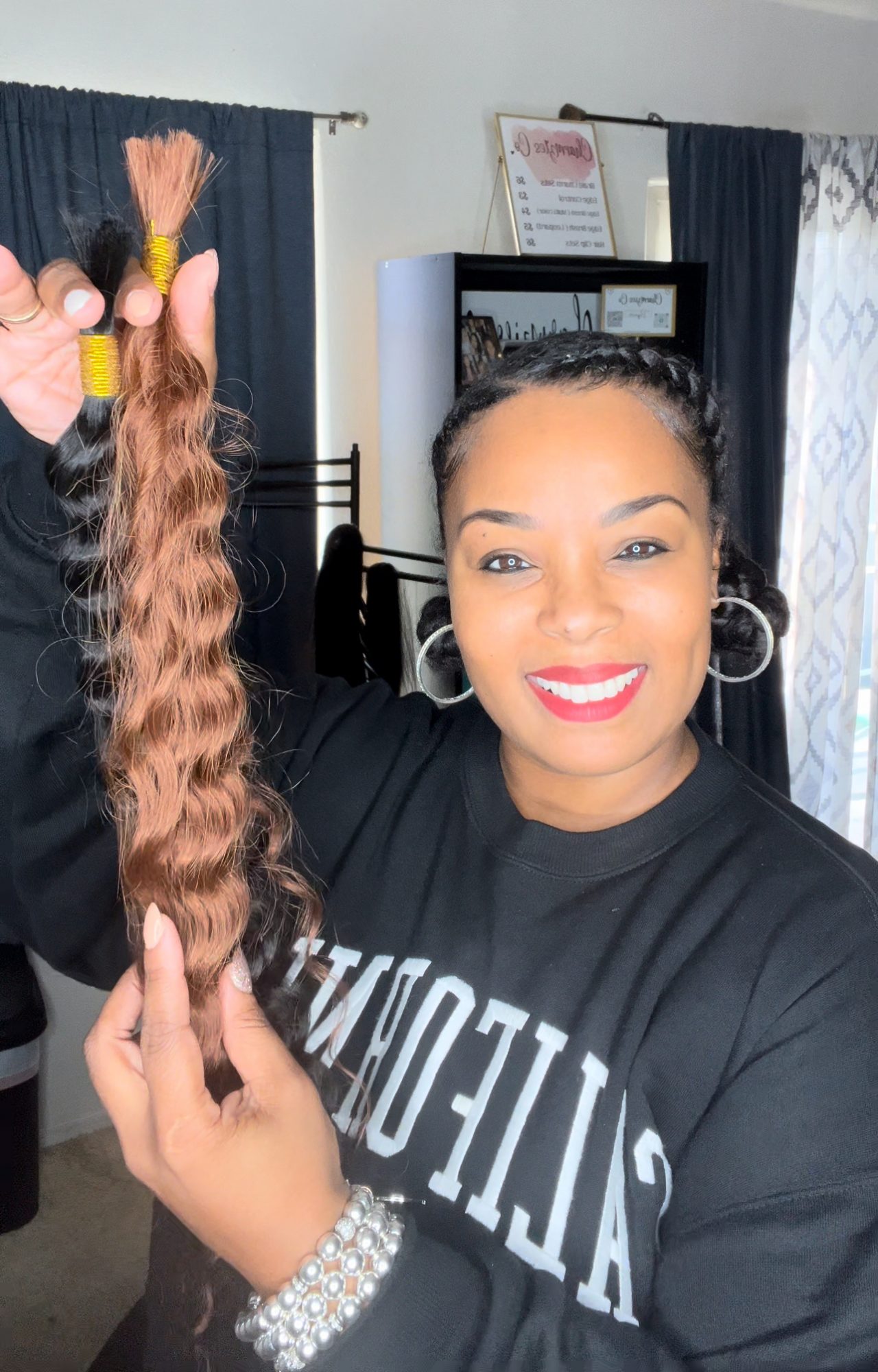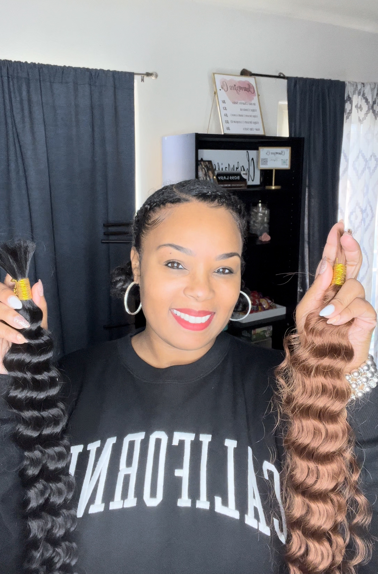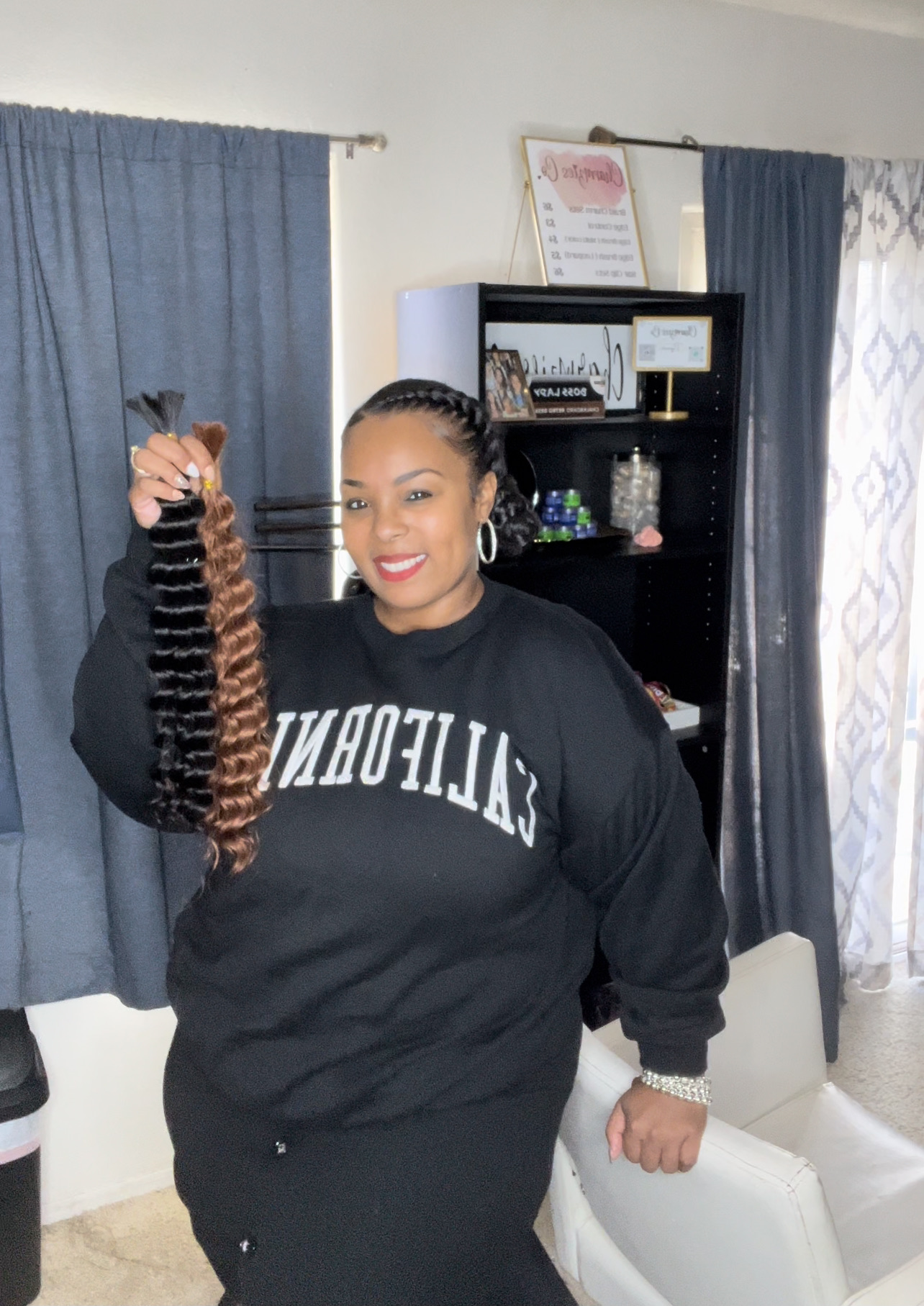 My family relocated from LA to Bakersfield, and this is where my passion for hair truly began. A few days before my freshman year, my parents were out of town, and my mother instructed my oldest sister, Emeiko, to braid my hair in individuals. Well, let’s just say I ended going to school with Straight Backs before it was ever a trending style. Talk about devastation!! We still laugh about it till this day because I still can’t understand why she sent me to school like that. That was the moment I decided I would braid my own hair! And that’s exactly what I did. When my Straight Backs got old, I sat on my bathroom counter and took my braids out one by one, and I reinstalled them. From that moment on I braided my own hair and eventually was known as the girl in high school that “did hair” lol.