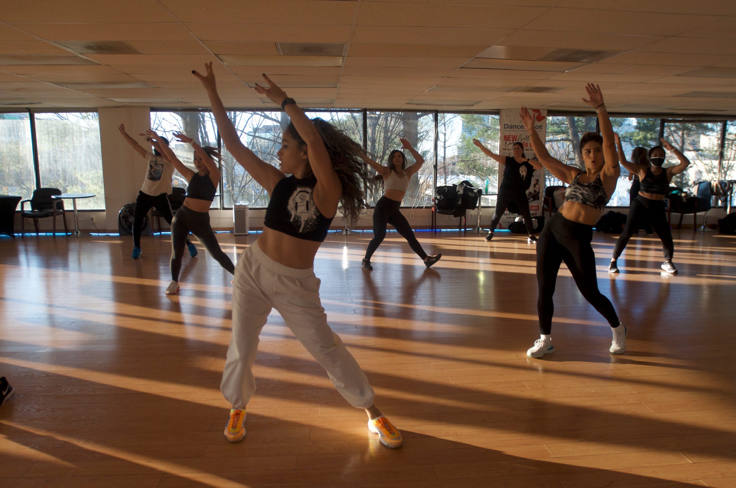 During my high school years, my sister and I discovered these dance workout classes at the gym. They were based off of Brazilian popular music, which is mostly instructional (for example, lift your arms and jump, or go to the left and draw a circle with your hips); once we started taking these classes, we were naturally good at them and were asked to lead the class. Fast forward to moving to the United States, my sister and I were looking for something similar. Because we didn’t find it, we created it.