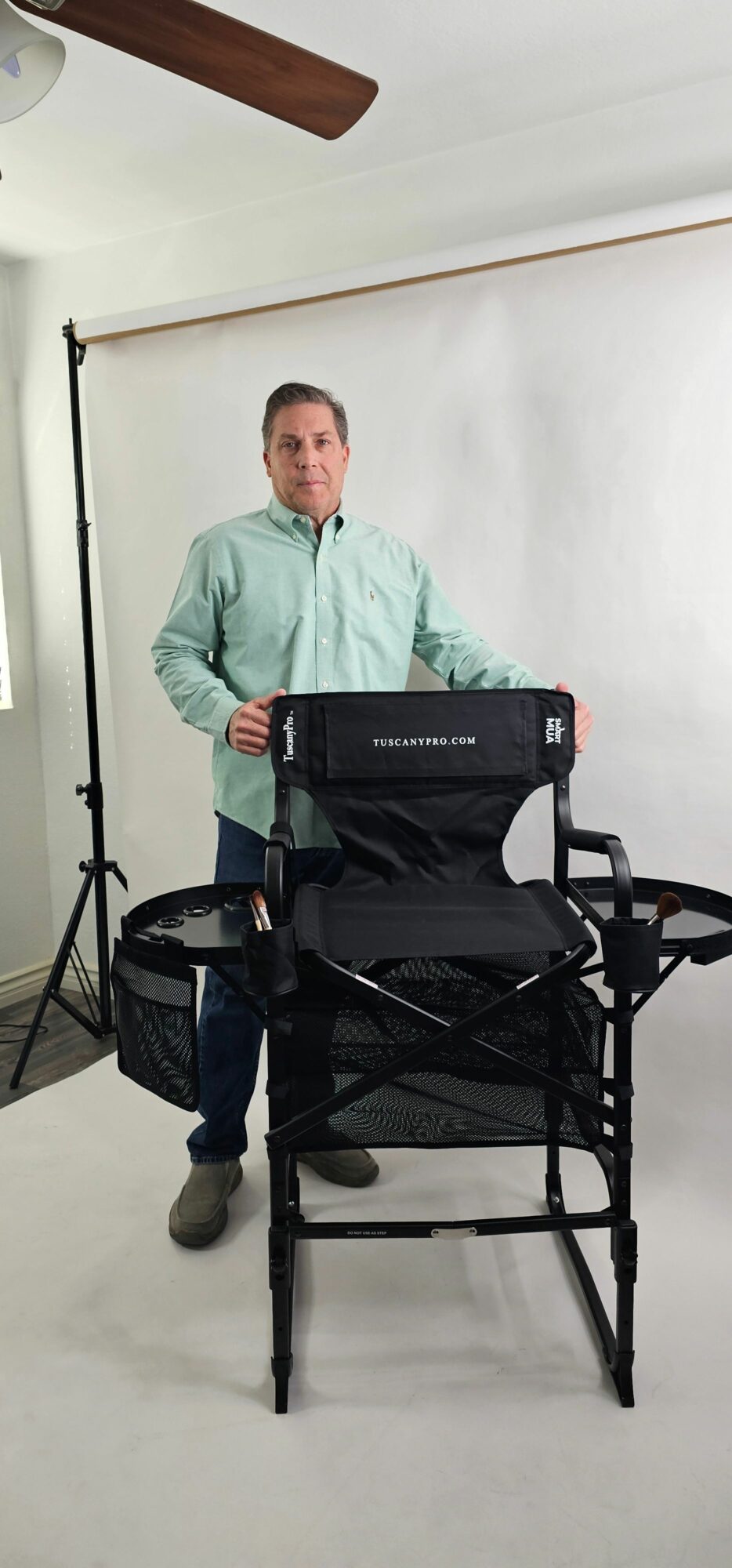 Originally, I started in the camping industry 30 years ago designing and manufacturing high end camping furniture, until one day I had realized that some of my customers were purchasing my camping chairs to use them as makeup and hairstylist chairs. That is when it hit me. I realized that there was nothing on the market that would cater these types of clients. From there I started the first line of professional makeup chairs, and today we are proud to say that we are the original creators in the whole world of the first professional portable makeup and hairstylist chairs.