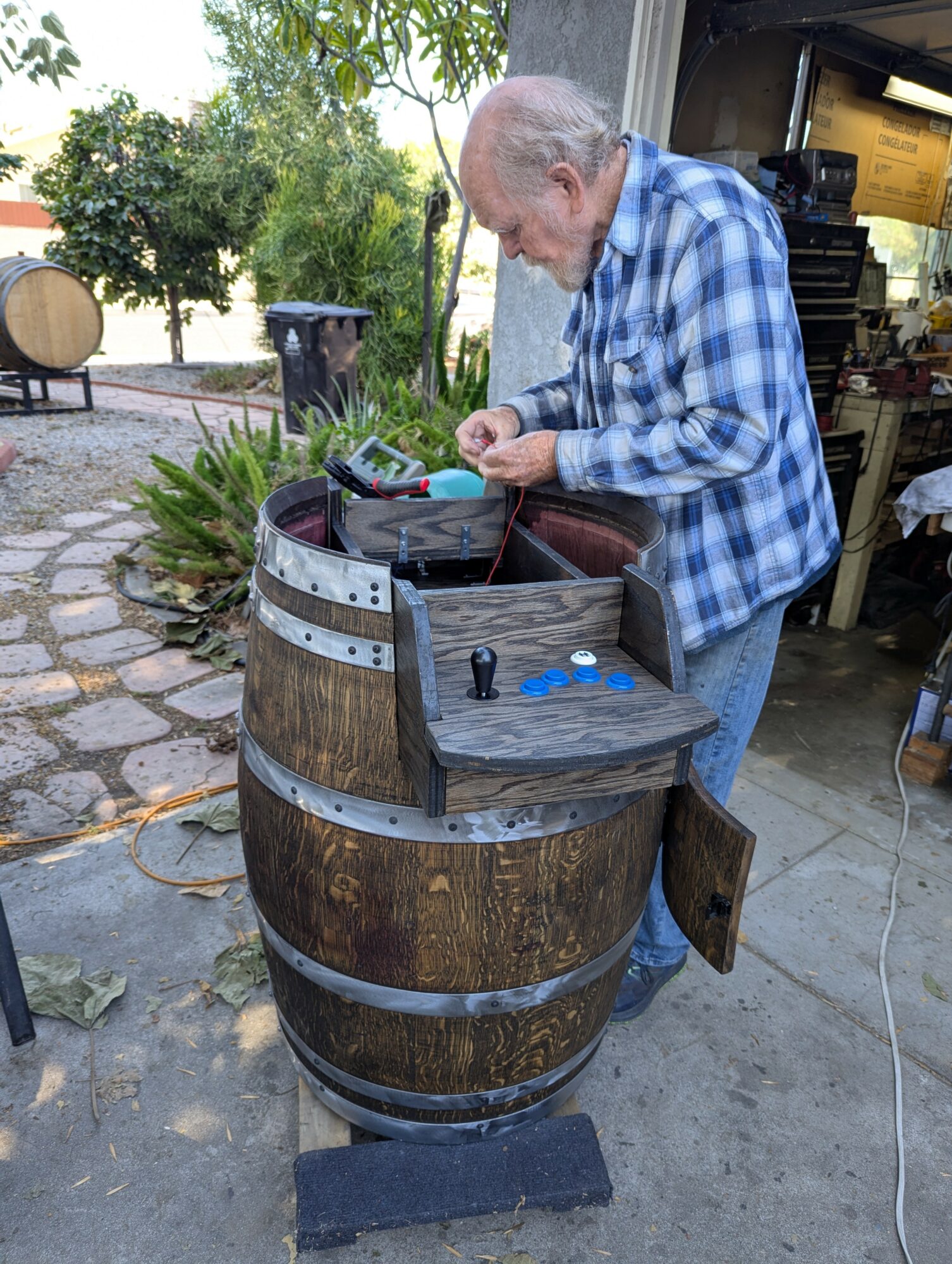 Our handmade, reclaimed furniture and decor pieces are the perfect choice to add rustic charm to your home or create an inviting outdoor space. From wine barrel cabinets to wine barrel arcade games, every item is a one-of-a-kind creation that tells a story.