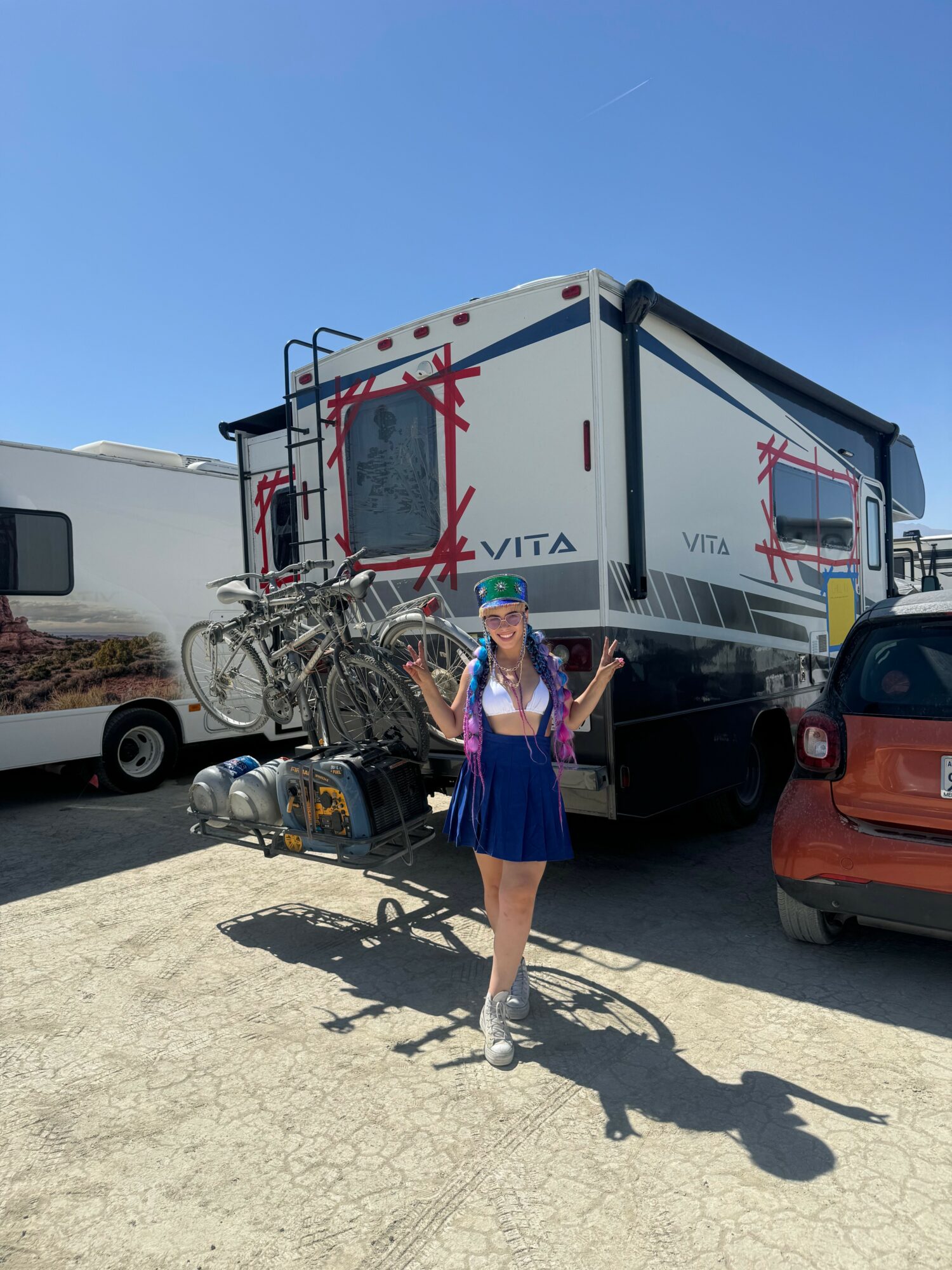 One of our most exciting offerings is hosting guests for Burning Man—it’s truly the highlight of our year. Over time, we’ve developed a specialized Burning Man RV package tailored to meet every need for the event. From reflective window covers to keep the RV cool, to additional water supplies and 24/7 support, the package ensures guests have everything required for a seamless and unforgettable experience in the desert.