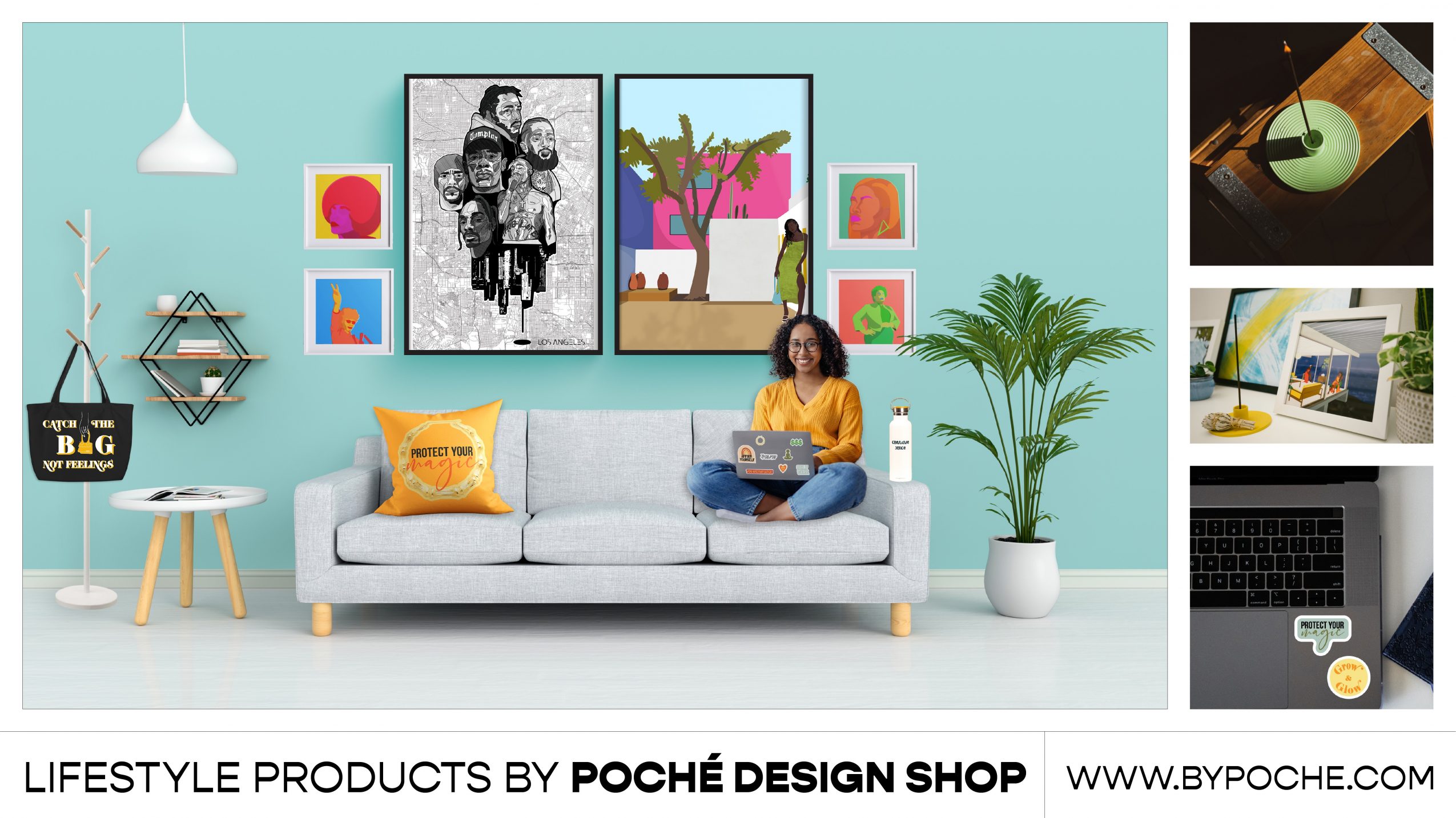 I was born in Lagos, Nigeria, and lived there for 9 years before my family moved to South Africa for my dad’s job. I spent just over 12 years in Durban, South Africa through high school and undergrad where I received my first degree in architecture. I moved to Los Angeles for graduate school at the University of Southern California. While at USC I met my best friend and now business partner, Morgan Sumner, while we were both getting our masters of architecture degree. After graduation, I worked in architecture until I was laid off from my office job on valentine’s day of 2020. As the pandemic began my business partner and I decided to launch our business out into the world. Poché Design Studio is a creative space where we create visually impactful designs for purpose-driven clients and create lifestyle products that enhance your everyday rituals and routines. Since we launched our client services in 2020, we have been consistently booked and busy from word-of-mouth marketing and I have been blessed to be able to work for myself full-time for over a year now. Our company as grown from Morgan and I to a team of 7 talented black women moving the mission forward.