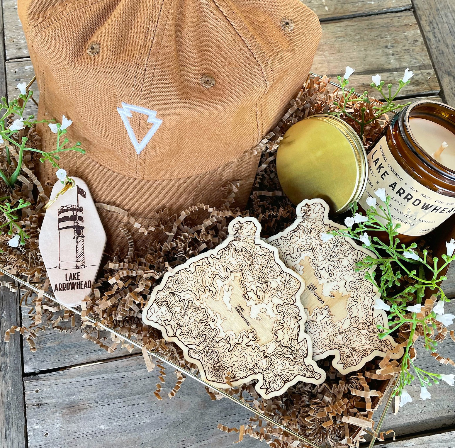 We offer local delivery on the mountain + ship any of the items on our website. Our welcome/thank you/congrats/bday baskets have become a huge hit. We get calls- sometimes day of, asking for a basket. We can create them for any occasion and any price point. We have a Website (www.eLAvateHighGear.com) and Instagram and offer shipping and personal delivery/meet-ups locally. We offer a personal touch and enjoy creating items for people to wear and share in the “Lake Arrowhead experience”.
