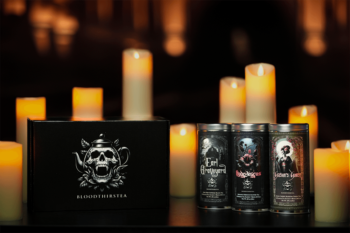Bloodthirstea is more than just a tea brand; it’s a fusion of unique flavors and a captivating aesthetic inspired by my passions. We aim to provide an unforgettable tea experience that excites the taste buds and leaves each person feeling satisfied.