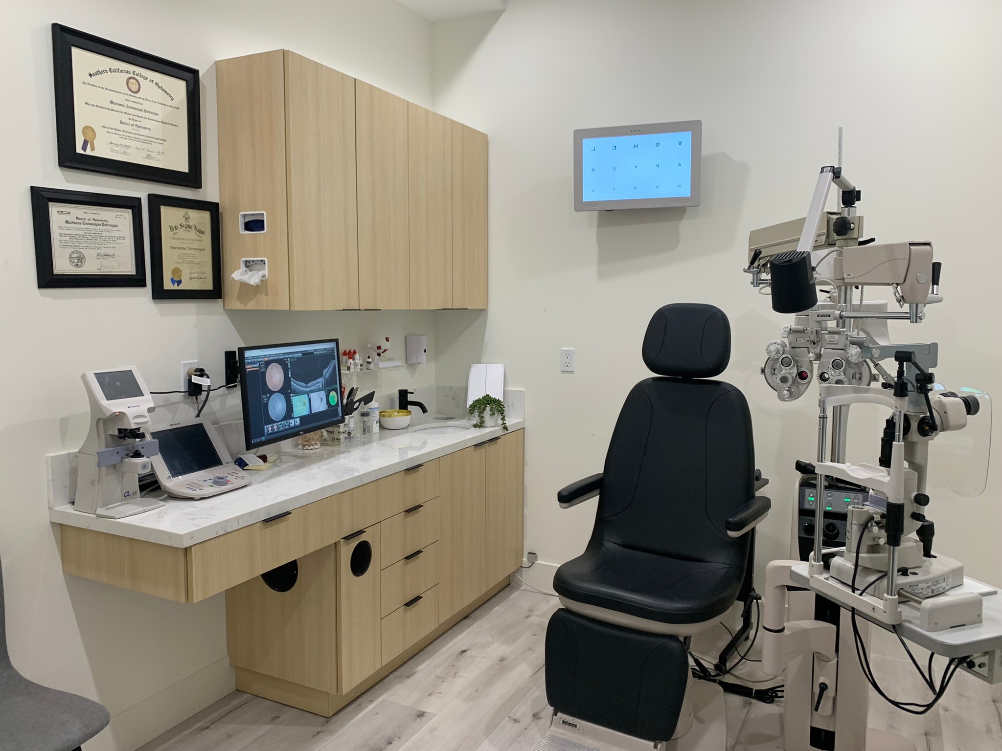California Optometry is designed with a lot of love in a modern, cozy, bright environment with advanced technology and an Optical Boutique offering a great selection of eyewear. We have a Retinal Camera, Optical Coherence Tomography (OCT), Anterior Segment imaging, Virtual Visual Field to name a few. It is located in the San Fernando Valley and next door is California Dental so patients can have the opportunity to have their dental and eye care needs taken care of on the same day. We offer examinations for everyone in the family, contact lens services, Myopia Control to help with the progression of nearsightedness, Lasik and Cataract surgical management, Diabetic and other retinal examinations.
