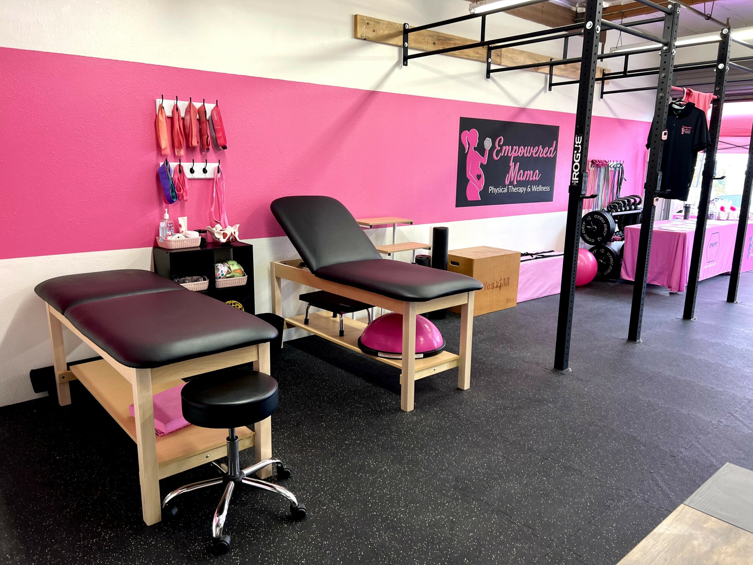 Less than a year later, in February 2020, just one month before COVID shut everything down, Empowered Mama Physical Therapy & Wellness was born. Like many small businesses, the pandemic forced me to pivot quickly. I moved to telehealth, then eventually began seeing clients 1 on 1 in my garage gym, which felt safer and more comfortable to many of my clients than a traditional clinic at the time. As restrictions lifted, Empowered Mama continued to grow, eventually outgrowing the garage and moving into our current space in Upland.