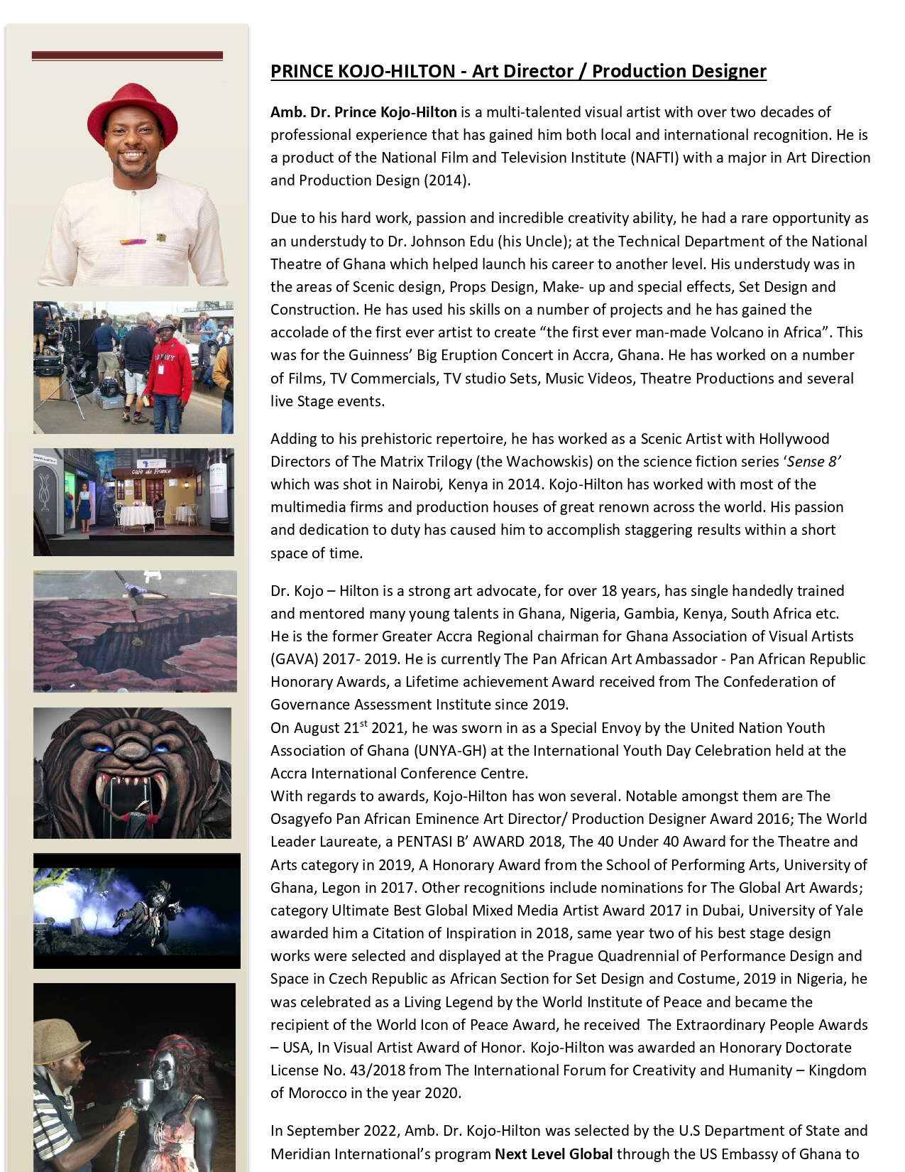Our company is best known for making imagination a reality. What sets us apart is not making the norm and am really proud of always setting records and breaking it with mind-blowing works of Art. We have worked with most of the creative Arts firms in Ghana including working with Hollywood in Nairobi Kenya on the shoot of Sense 8 in 2014.
