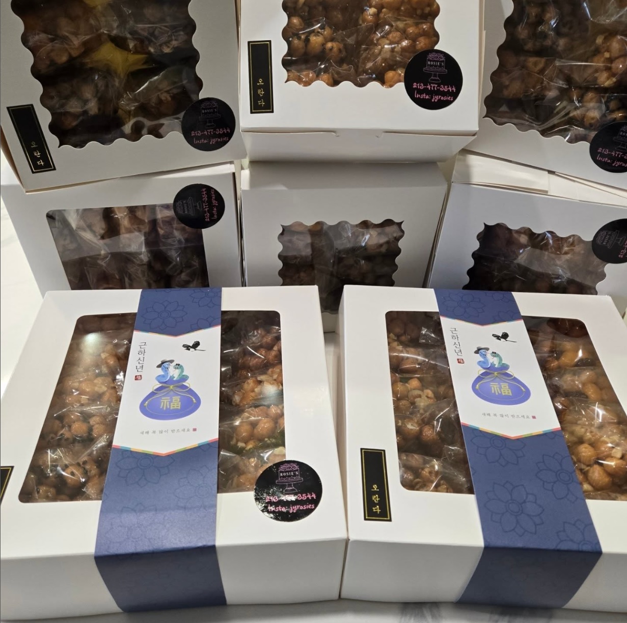 Rosa Shin, founder of Rosie’s, always had love and passion for traditional Korean cuisine. She first took interest in contemporary Korean rice cakes in the beginning of 2024, when she was given a rice cake topped with beautiful flower decorations at her grandson’s “Dol” party (first birthday) as a gift from her daughter. Soon she learnt that these new ‘rice cake arts’ are one of the hottest trends in South Korea, and she started to learn independently on how to create her own. The art of making delicious traditional Korean rice cakes and topping them off with beautiful floral patterns or with funny character designs quickly became her new hobby each day. She shared her first batch of rice cakes with friends and family, and everyone fell in love with them.