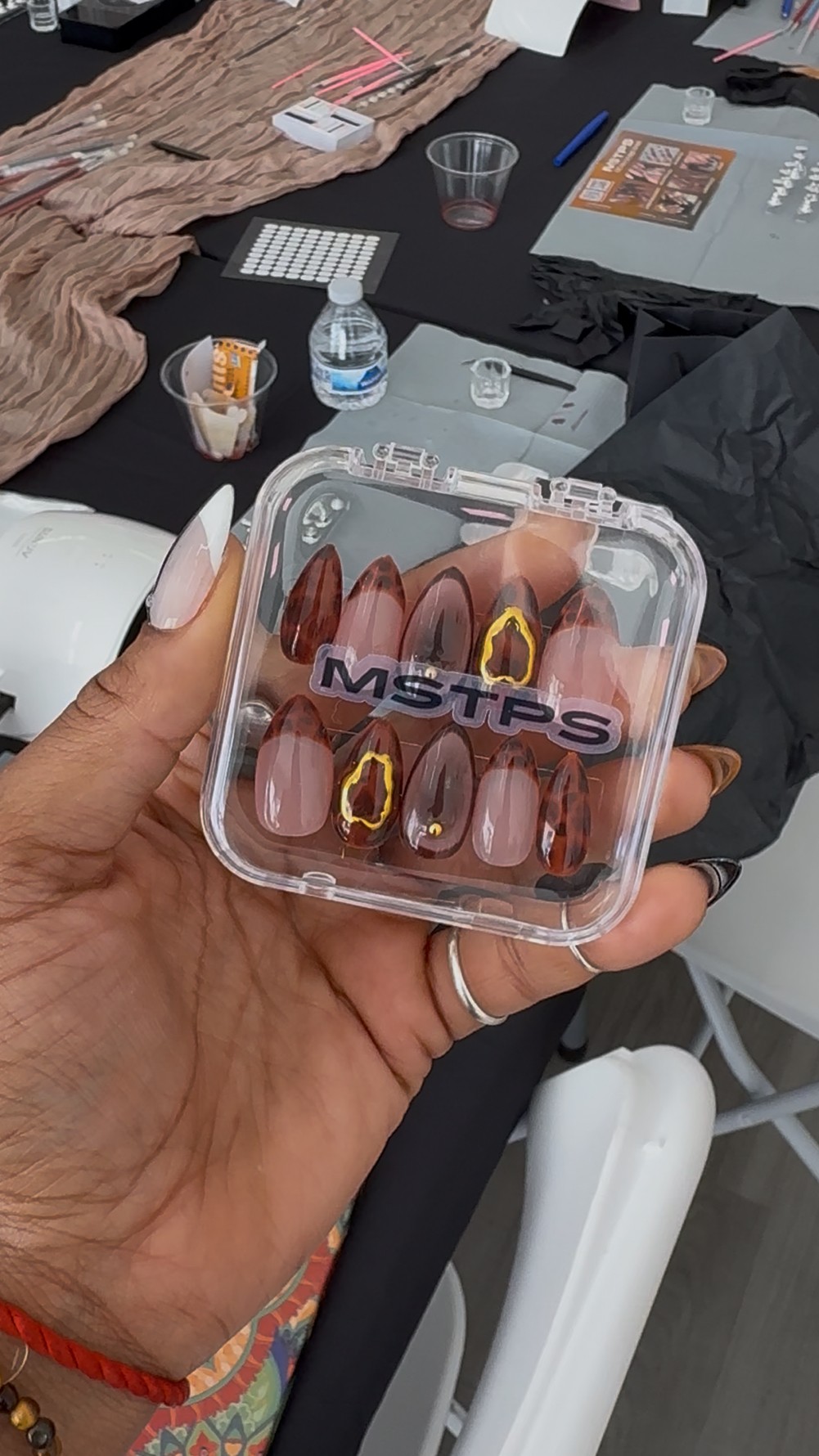 After realizing I didn’t have the capacity to create individual sets for every person who wanted them, I leaned into my background in education. I realized I could teach others how to create the sets for themselves. So I launched Tips & Sips, a space where women could gather in community, express themselves through art, and leave feeling softer, bolder, and more seen. Each nail set I create isn’t just decoration; it’s a reflection of emotion, intention, and beauty that feels lived-in and personal.