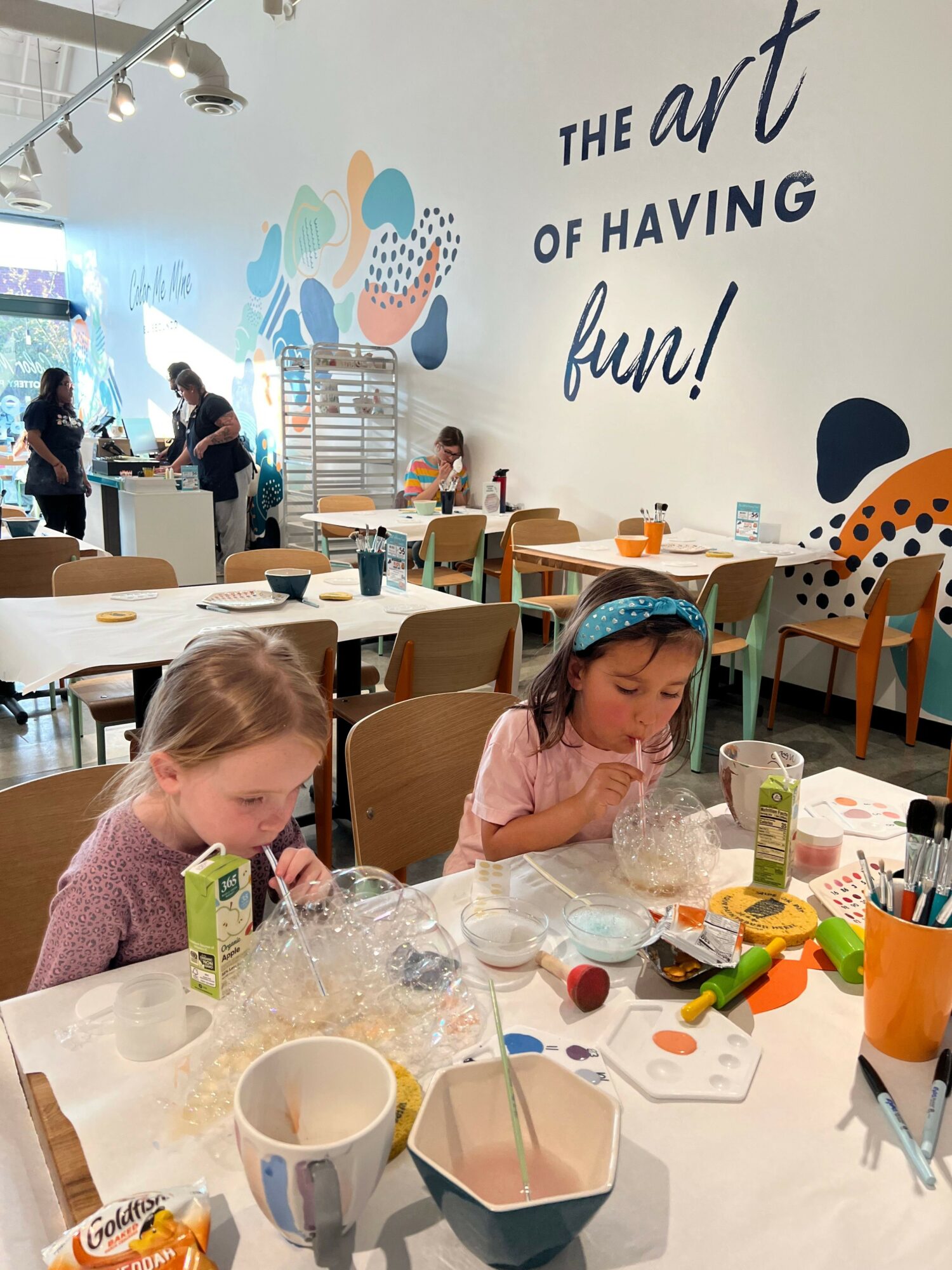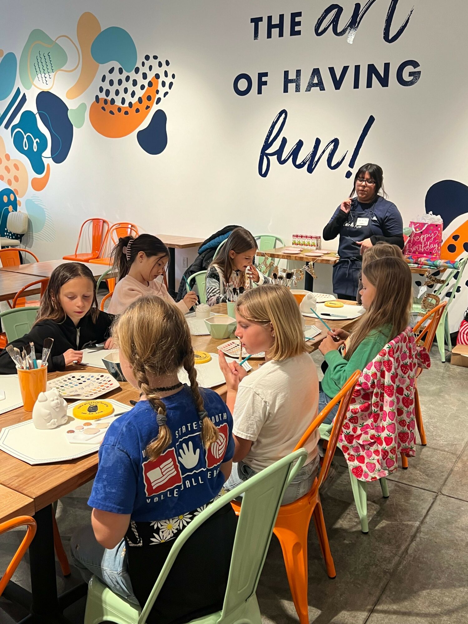 Our studio supplies the brushes, paints, and a myriad of tools to enhance your piece. We glaze and fire on site make the design permanent and food safe. It’s a fun, hands-on activity that’s perfect for individuals, dates, work team builds, mom groups, and families. Color Me Mine is also a great birthday party destination as we host private and in-studio parties across all ages. We also host regular sip and paint and bingo evenings.