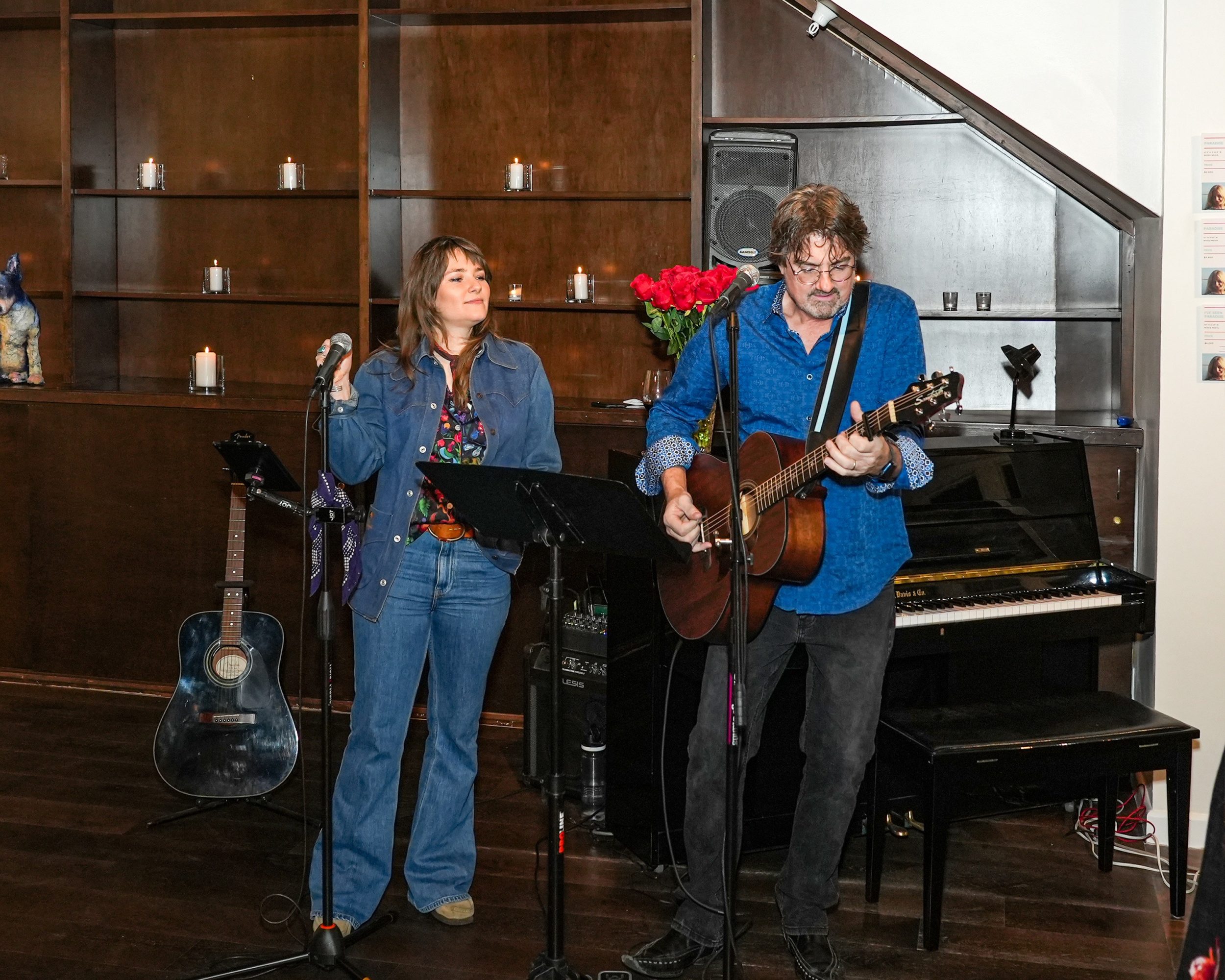 I can’t tell you how many times people expressed to us how our artwork provided them with inspiration and light during this very dark time in their lives. We set up a little bar in the back of the gallery and often, we found ourselves drinking tequila with cool, interesting people and sharing stories about how much our lives had changed during the Pandemic, as well as talking about music and art of course. When we saw the positive impact our welcoming approach was having on people, we decided to double-down on the experiential component and brought live music into the gallery on a regular basis. We even moved a stand-up piano into the gallery and encouraged customers to play and sing. The vibe at the gallery felt fun and relaxed and quickly word-of-mouth started to spread in the community about what was happening at Song-Word Art House.