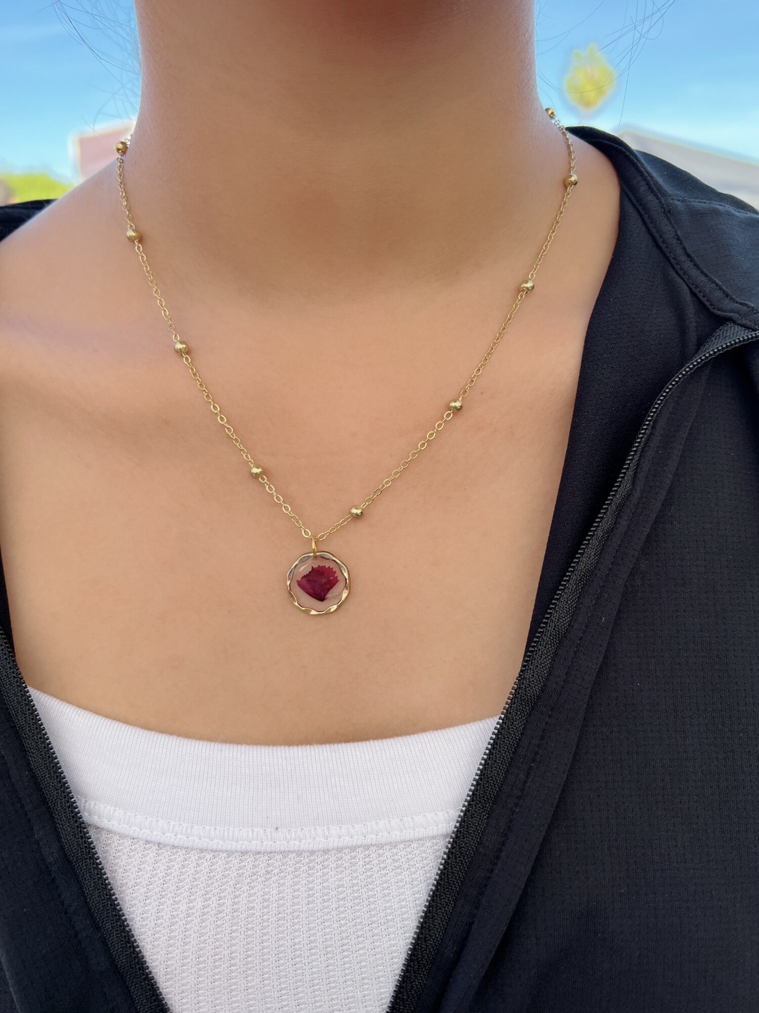 - Resin Pressed Flower Necklace: $30.00