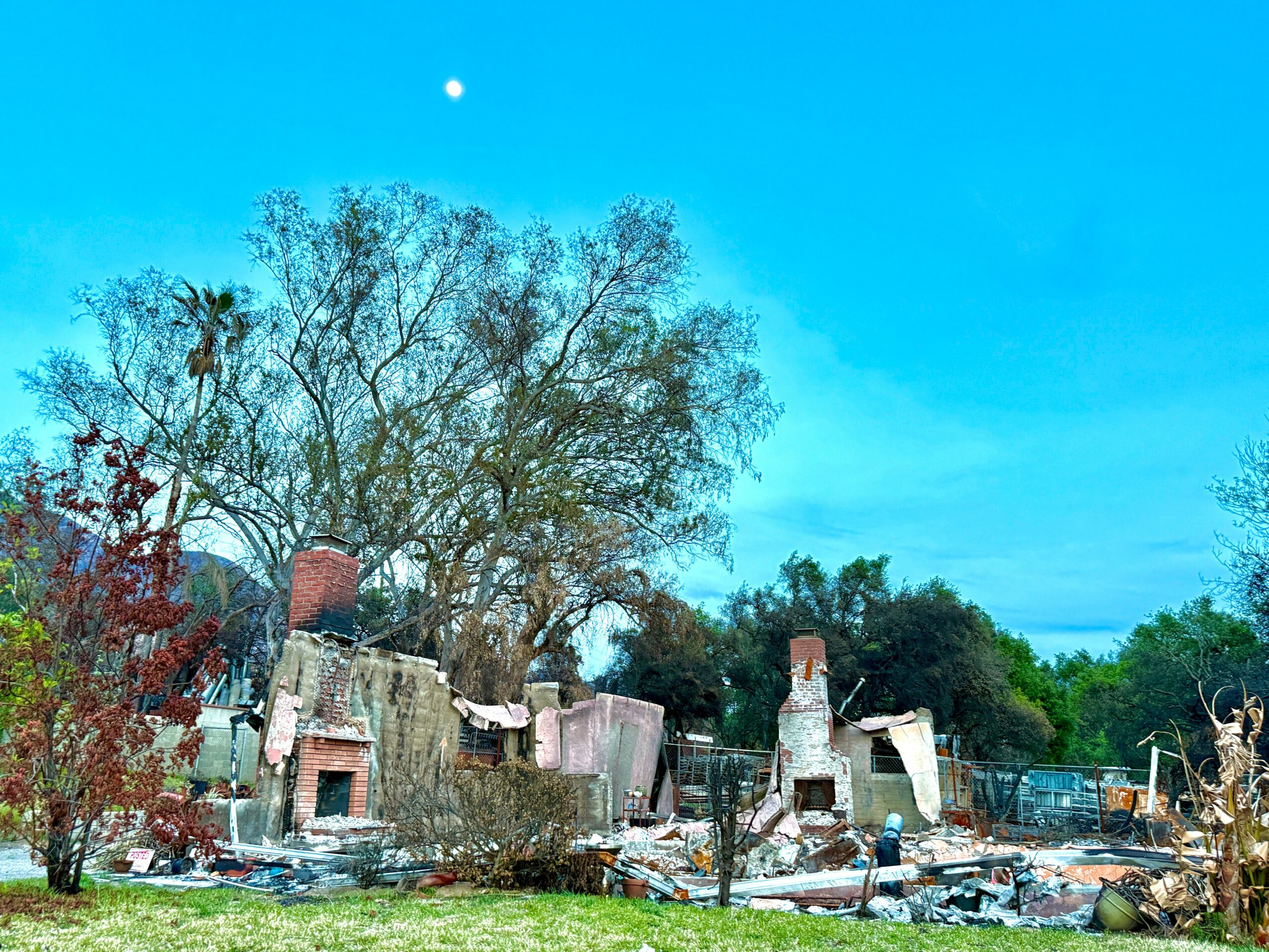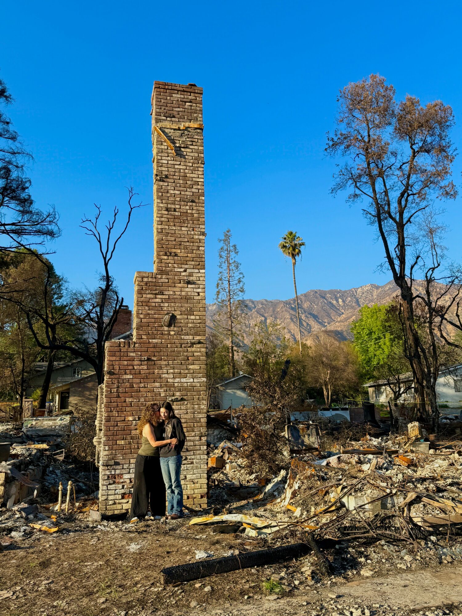 Through my project, I’ve photographed what remained of these burned homes in Altadena (with or without chimneys) – a place I’d frequented and documented extensively prior to the flames. These photos either include the owners and families who lived in the homes, when they wished to be included, or I’d just document what remained for some who just couldn’t face it themselves. I did this for everyone who requested it of me, offering the photos to them as a gift, and even providing them with shots of their homes from before the fire if I had taken any.