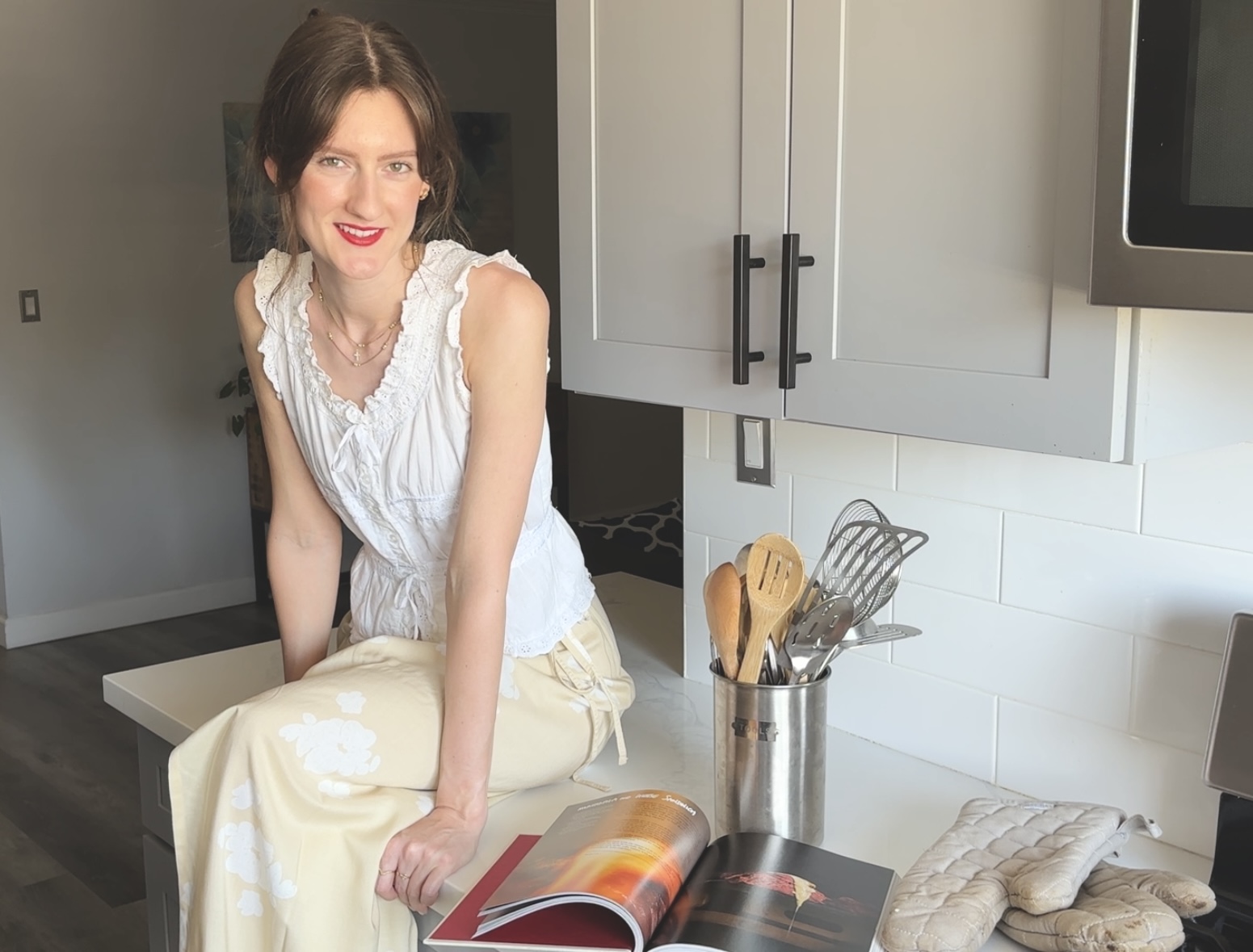 Not many people know that I have a double middle name so if I was to give you a formal introduction, I’d say, “Hi, my name is Alina Andrea Elisabeth Harmann”, and then we’d have a conversation about long names, where they come from, and that I spell Elisabeth with an “s” instead of a “z”. But I digress… I’m an actor and have just hit my third year living in LA, and am finding this current slow pocket in the industry to be a time of reflecting on how else I can stay creative. As such, I’ve leaned heavily into my YouTube channel to drive my creativity. I’m currently exploring societies draw to the “tradwife” and am delving into tasks, skills, and hobby’s that make someone a tradwife. That means I’m baking and cooking a lot… So really, I’m a person who constantly seeks to find ways to stay engaged with my creative side without limiting myself to an expectation of what an actor should be doing.