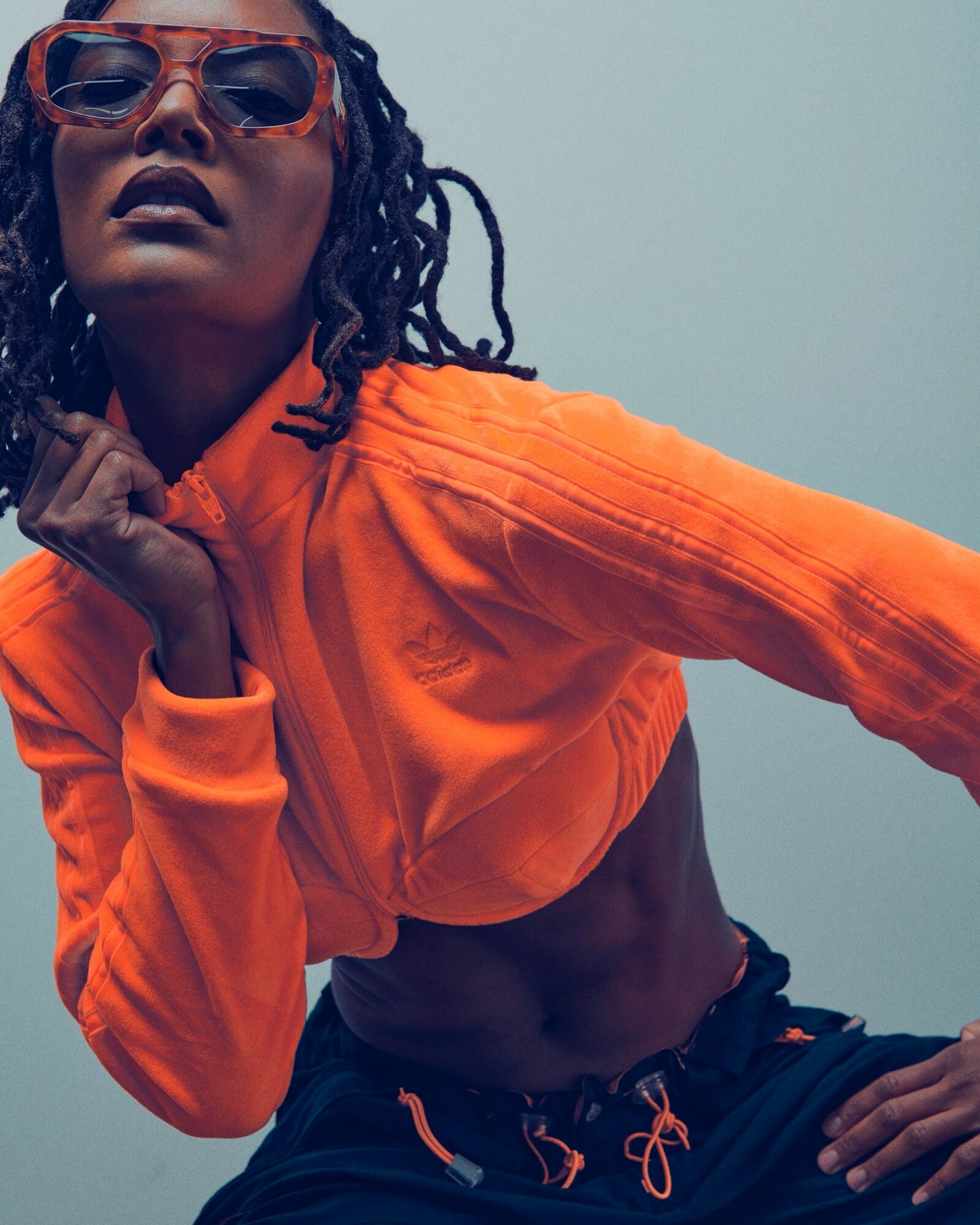 Orange crop top w/ sunglasses & headphone images: Wilder Marroquin