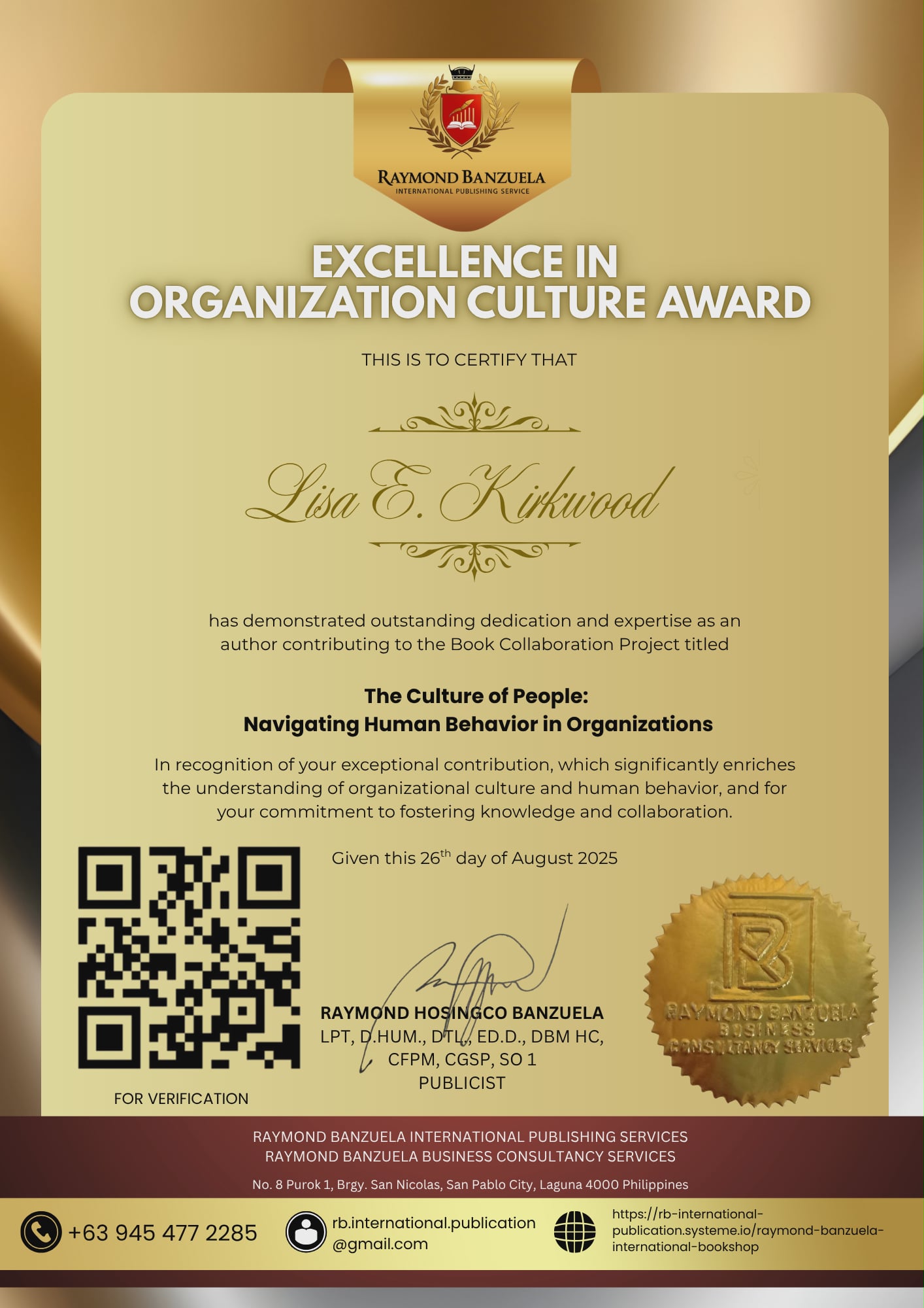The Culture of People: Navigating Human Behavior in Organizations; Rising Together – The Power Within: Women’s Stories of Resilience and Leadership (Book II 1); The Digital Society: Reimagining Social Dynamics with Artificial Intelligence.