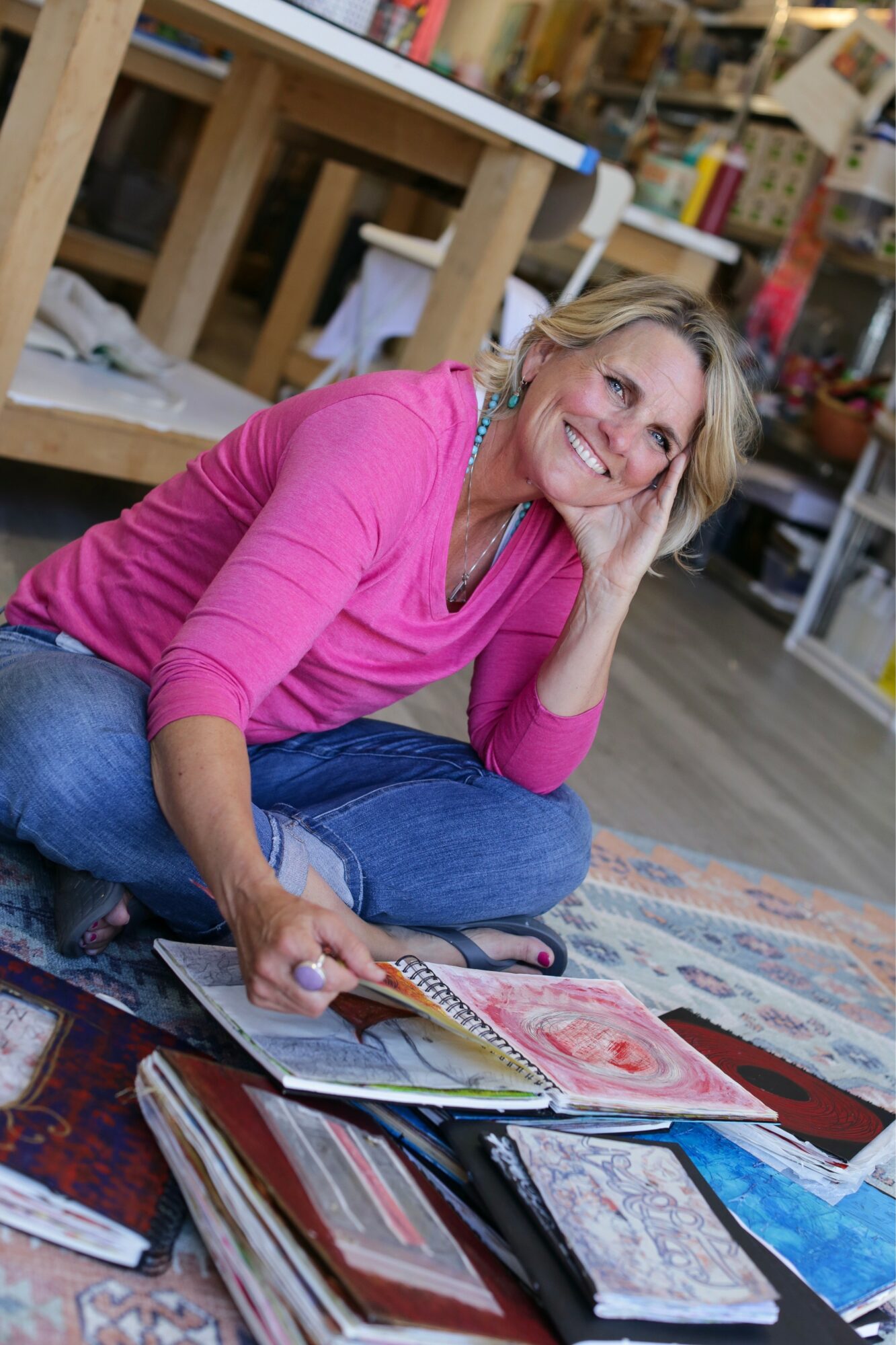 My background includes a master’s degree in psychology and decades of personal art making and art journaling, which deeply inform how I teach. I’m especially interested in what happens when we stop trying to make “good art” and instead allow creativity to become a form of listening and self-trust. Right now, I’m further developing online and in-person workshops that invite women into a slower, more spacious relationship with creativity as self-care and healing.