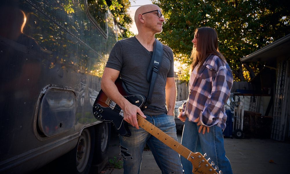 We make indie pop music that has fun, upbeat melodies. We’re proud of our latest single, which we wrote about falling in love with each other, inspired by a photograph we took years ago, kissing in front of a graffiti mural that said, “BANG! BANG!” That became the title of the song, and the chorus goes, “Wanna hang this kiss in a picture frame / but the moment is already gone.” We love reminiscing about those early days when friendship and our musical connection became something more, and it’s sort of tragic that you can never go back and relive the sparks that fly at the beginning. That’s what we captured a fleeting glimpse of with the photo we took and now with the song we wrote.